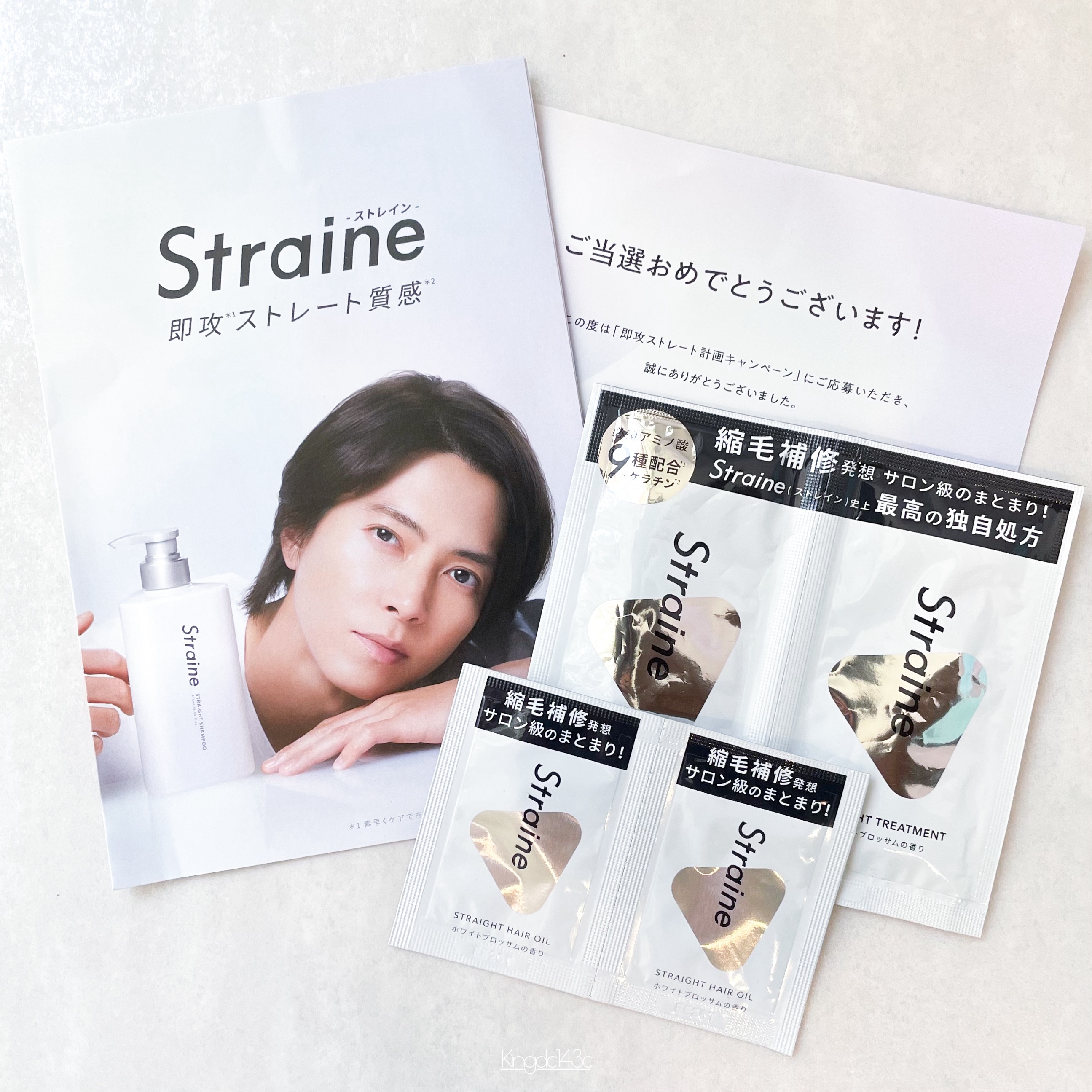 - “straight(真っ直ぐ)”と“line(線)”を組み合わせた造語「Straine」は、まるで一本の美しいラインのようにしなやかで整ったストレートヘアをイメージ。理想のストレート質感を目指し厳選した補修成分と内部構造に着目した独自の補修設計技術で、乾燥によるクセ・うねりケアに悩むすべての人へ、新しい自分との出会いをお届けする新ヘアケアブランドです。  ️髪の内部構造に着目した、独自の「トリプルストレート処方」 縮毛補修発想。髪の内側の構造に着目し、まっすぐまとまる髪を科学的に研究し導きだした3つの処方。 髪の構造を深く理解したアプローチで髪質を再整*1し、潤いを保ちながら、滑らかな指通りへ。 9種の必須アミノ酸*2と7種のケラチン*3を贅沢に配合し、髪内部を補修をしながら、理想の“シルクストレート質感*4 ”を目指します。  ️POINT01|内部補修 -髪内部のうねり原因を補修。まっすぐな髪を目指して。 髪のうねりの原因となる乾燥による内部構造の乱れを、必須アミノ酸*2を含むアミノ酸と密度補強成分「ジマレイン酸」*5で補修。さらに、縮毛補修発想から生まれた成分「トステア®」*6を配合し、ハリ・コシのあるストレート髪を目指します。  ️POINT02|シルク質感 ‐ダメージを立体補修 ダメージによって生まれた髪内部の空洞“ダメージホール”を、保湿成分である7種類の分子量の異なるケラチン*3が髪芯部まで浸透し、立体的に内側まで補修。PPT系高級洗浄成分*7が、髪1本1本を洗い上げ、しなやかで指通りなめらかな“シルクタッチ”の髪へと仕上げます。  ️POINT03|うるおいバリア ―湿気や熱から髪を守る 湿気によるうねりを防ぐために、5種のセラミド*8とサクラン®*9で髪内部の水分をキープ。さらに、熱に反応してバリアを形成する「γ-ドコサラクトン」*10と、キューティクルを保護する「擬似18-MEA」*11が外的ダメージから髪を守り、湿気から髪を保護しながらストレート状態を長時間キープします。  ️凛とした透明感が香り立つホワイトブロッサムの香り サロン帰りのような心地よさを、毎日のバスタイムに。フレッシュなフローラルと果実の爽やかさが調和した、みずみずしく上品な香りです。 *1 うるおいにより、髪の質感を整えること *2 バリン、トレオニン、イソロイシン、ヒスチジン、フェニルアラニン、ロイシン、リシンHCl、メチオニン、トリプトファン(全て保湿) *3 加水分解ケラチン(カシミヤヤギ)、ヒドロキシプロピルトリモニウム加水分解ケラチン(羊毛)、(ジヒドロキシメチルシリルプロポキシ)ヒドロキシプロピル加水分解ケラチン(羊毛)、ココジモニウムヒドロキシプロピル加水分解ケラチン(羊毛)、イソステアロイル加水分解ケラチン(羊毛)、加水分解ケラチン(羊毛)、ケラチン(全て保湿) *4 うるおいによる、なめらかな質感のこと *5 ジマレイン酸プロピレンジアンモニウム(保湿) *6 アミノエチルチオコハク酸ジアンモニウム(保湿) *7 ココイル加水分解ケラチンK(羊毛)(洗浄) *8 セラミドNG、セラミドAP、セラミドAG、セラミドNP、セラミドEOP(全て保湿) *9 スイゼンジノリ多糖体(保湿) *10 (保湿) *11 セテアラミドエチルジエトニウム加水分解コメタンパク、ラノリン脂肪酸(保湿)