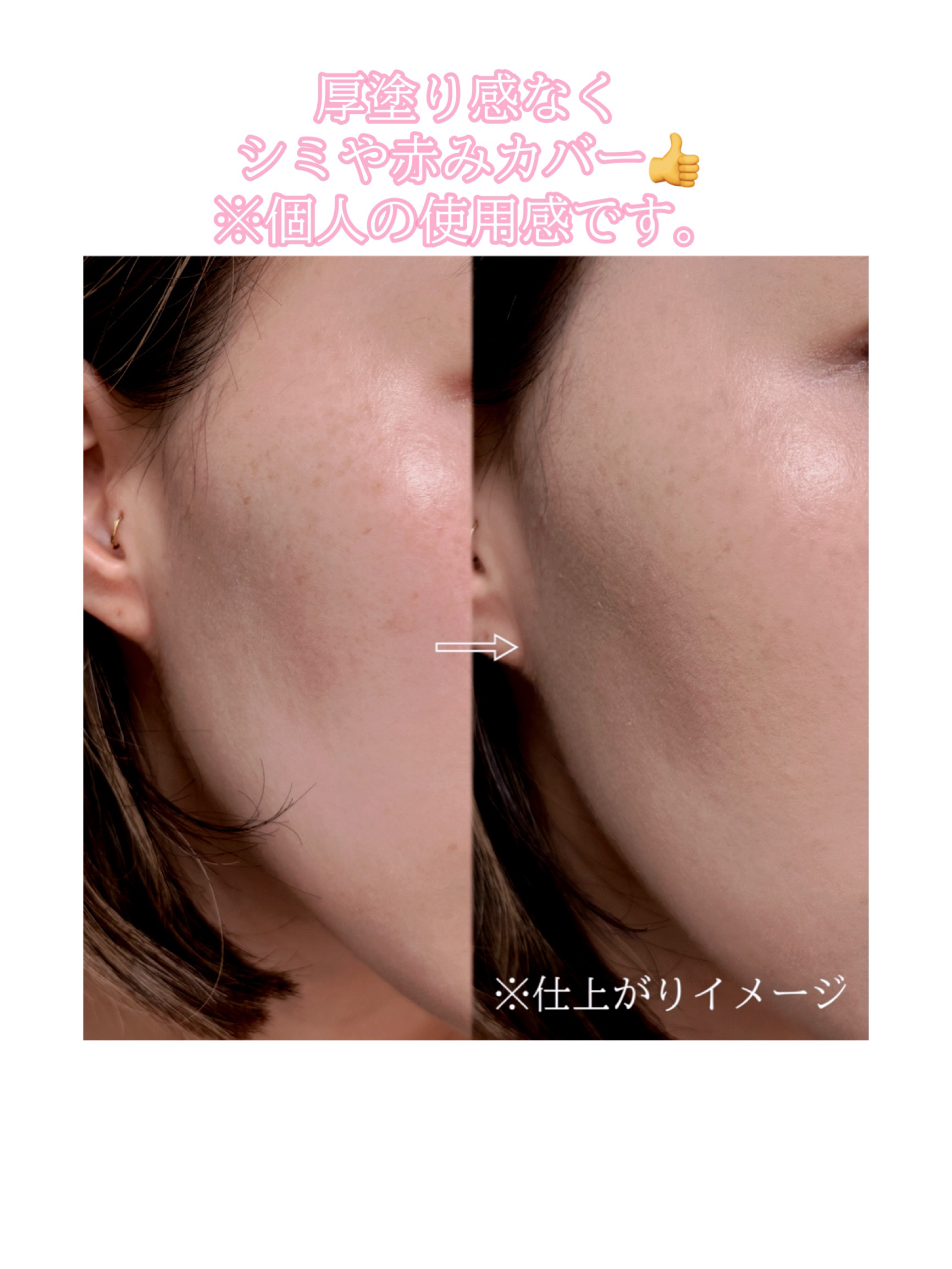 しっとりとする完璧なツヤ肌を演出したい ✔乾燥肌、脂性肌、インナードライ かなりカバーカは高くて毛穴、クマ、シミを均一にカバーしてくれたよ◎ スキンケア後のようなつるんとした仕上がりで高密着! 64%がエッセンス成分! 肌を軽えて滑らかな肌へ導くグルガン肌の保湿および肌を整えて落ち着かせるシラカバ樹液がたっぷり入ってるよ⭐️