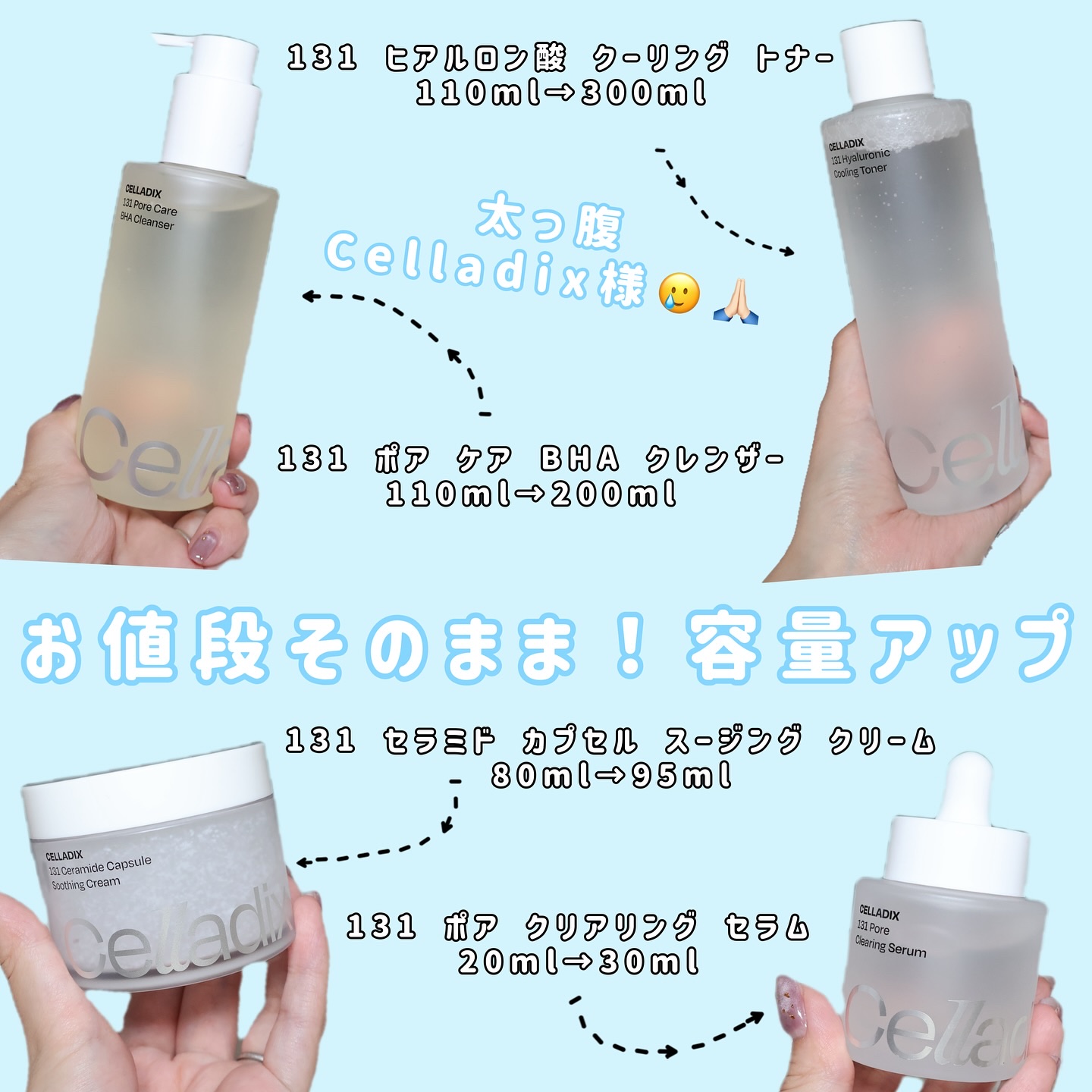 ˗ˋɴᴇᴡ𝐜𝐞𝐥𝐥𝐚𝐝𝐢𝐱131ラインˊ˗リニューアルして価格はそのままパッケージも容量もUP-Grade!!⋆•••••••••••••••••••••••••••••••••⋆🤍131ポアクリアリングセラム🤍131ヒアルロン酸クーリングト...