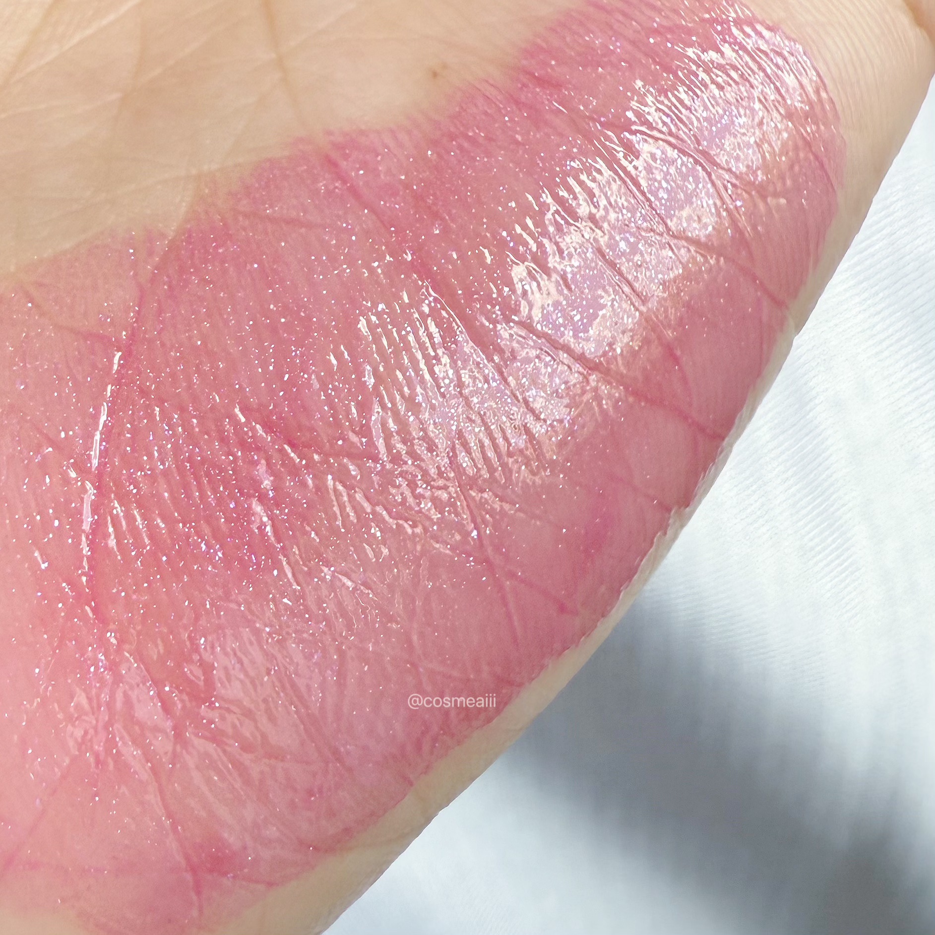 白いパケで開けるところがゴールデンピンクになって、 まるでデパコスみたいな質感🥺💕💕💕 ツヤタイプ 塗ってしばらく置いたら膜ができてツヤも色持ちもずっとキレイに残る 色持ち良いです。ツヤ無くなっても色がそのままキレイに残る 匂いはお花の香りです。 保湿力はかなり高いと思う◎