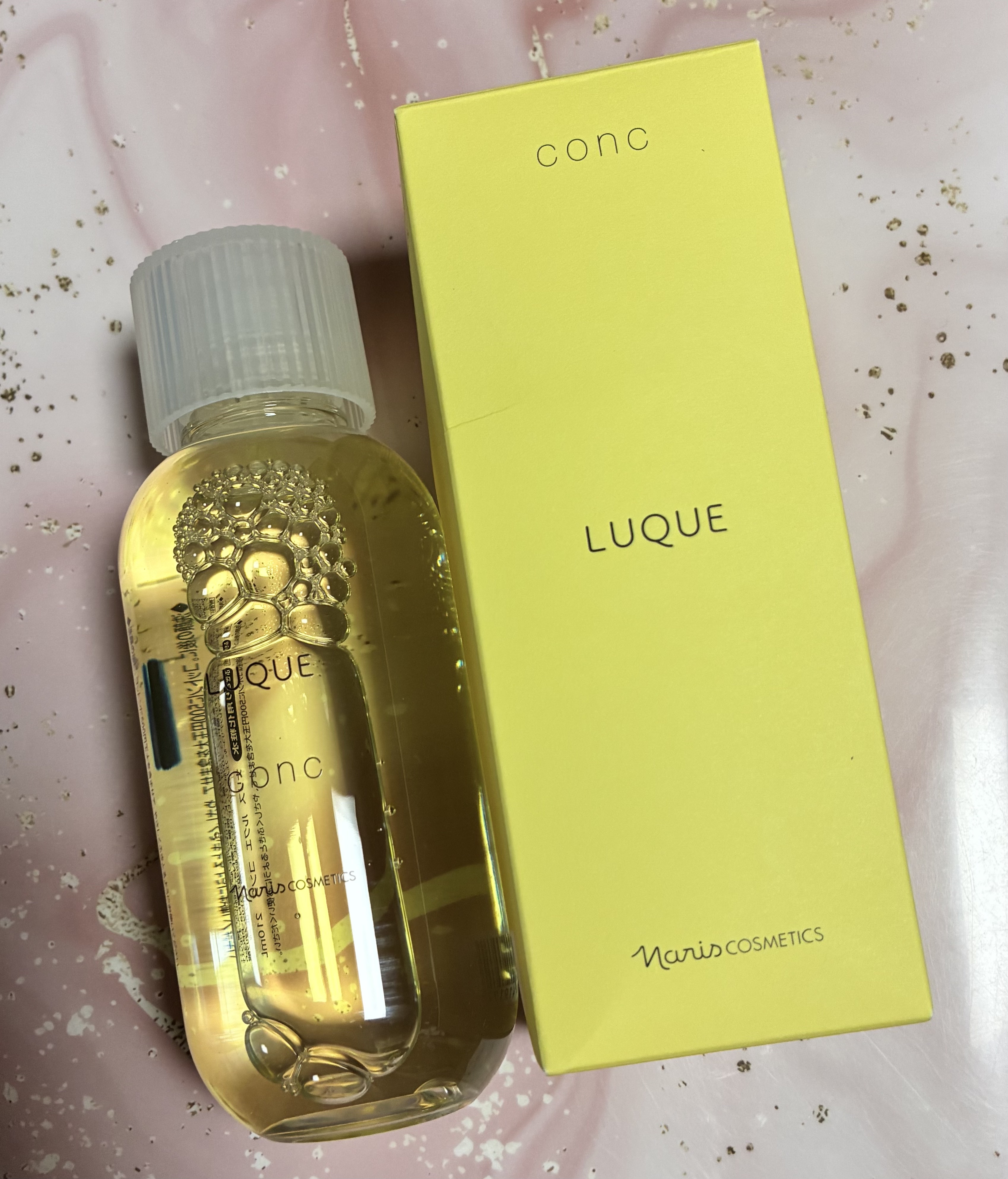- ■毛穴、ザラつき、くすみ※1が気になる方に、不要な角質をふきとって、つるんとなめからかな肌へ。 ナリスのふきとり化粧水は、5年連続国内売上シェアNO.1※2 肌にとって余分な老化角質をおだやかに取り除き、素肌が持つ本来の美しさを引き出すルクエのコンク(ふきとり用化粧水)はナリスの80年以上続く研究開発によって誕生しました。 ●キレイのこたえは、ふきとり化粧水という選択。 植物保湿成分で古い角質をやさしくオフして、次に使うスキンケアアイテムのなじみをサポート。日々変化する肌をすこやかに整えます。毎日の“ふきとり習慣”で理想の肌に近づきましょう。 ●厳選した3つの植物の力で角層ケアをサポート。 ・柔らかくほぐして、取り除きやすくする「ヨクイニンエキス」※3 ・潤いを与え、健康的な角層へ導く「月見草エキス」※4 ・潤いを逃さず閉じ込める「白花豆エキス」※5 【使用方法】 1. 朝晩2回、洗顔後の後に。 2. コットンに8〜10滴程度(500円玉大)を含ませます。目安は、コットン裏側に染み込む程度。 3. できるだけ力を入れずに、やさしくなでるように顔全体を拭き取ります。 ※1古い角質による ※2ナリス化粧品 2015~2019年度 「ふきとり用化粧水」販売動向調査 TPCマーケティングリサーチ株式会社調べ※3 ハトムギ種子エキス(保湿成分) ※4 メマツヨイグサ種子エキス(保湿成分) ※5ベニバナインゲン種子エキス(保湿成分)