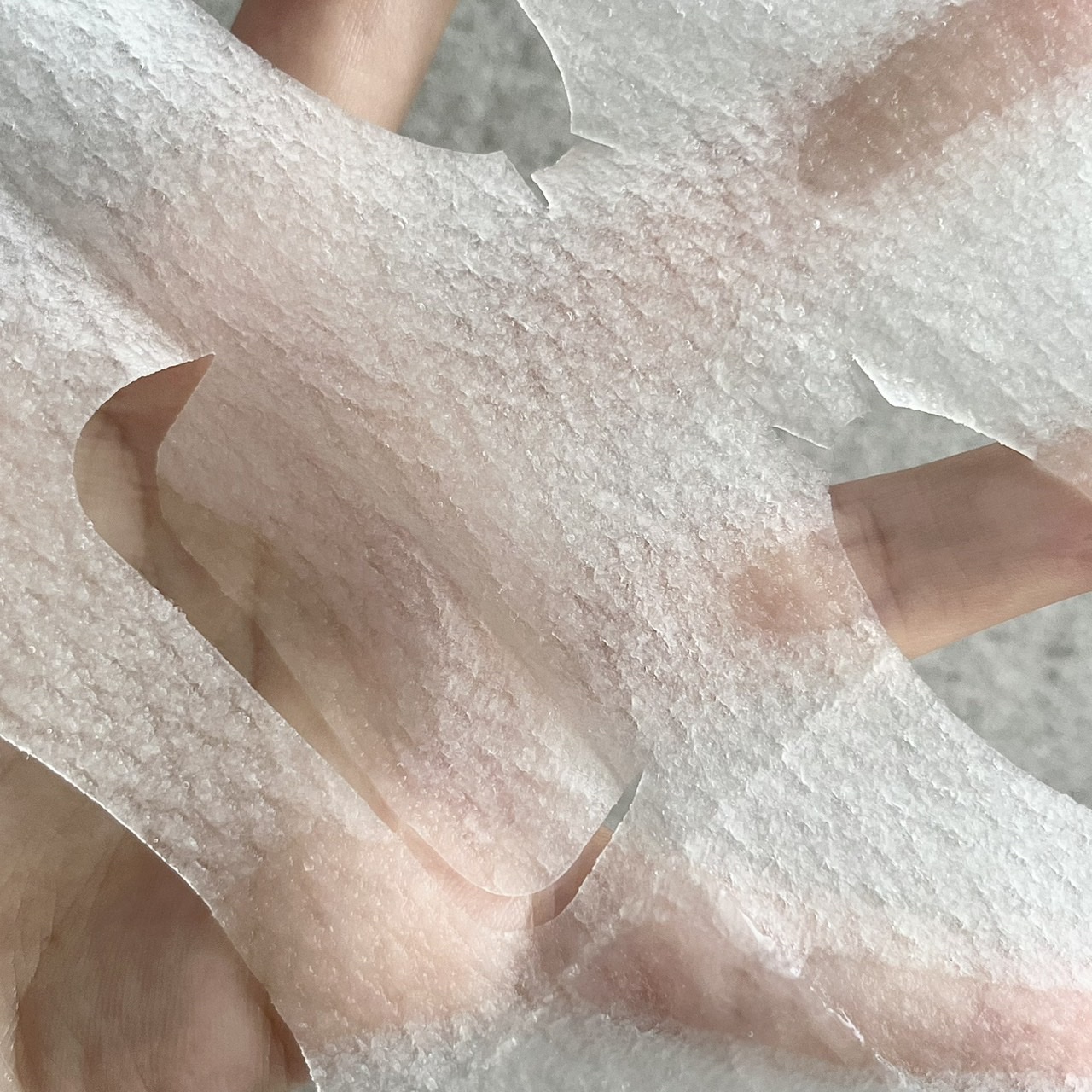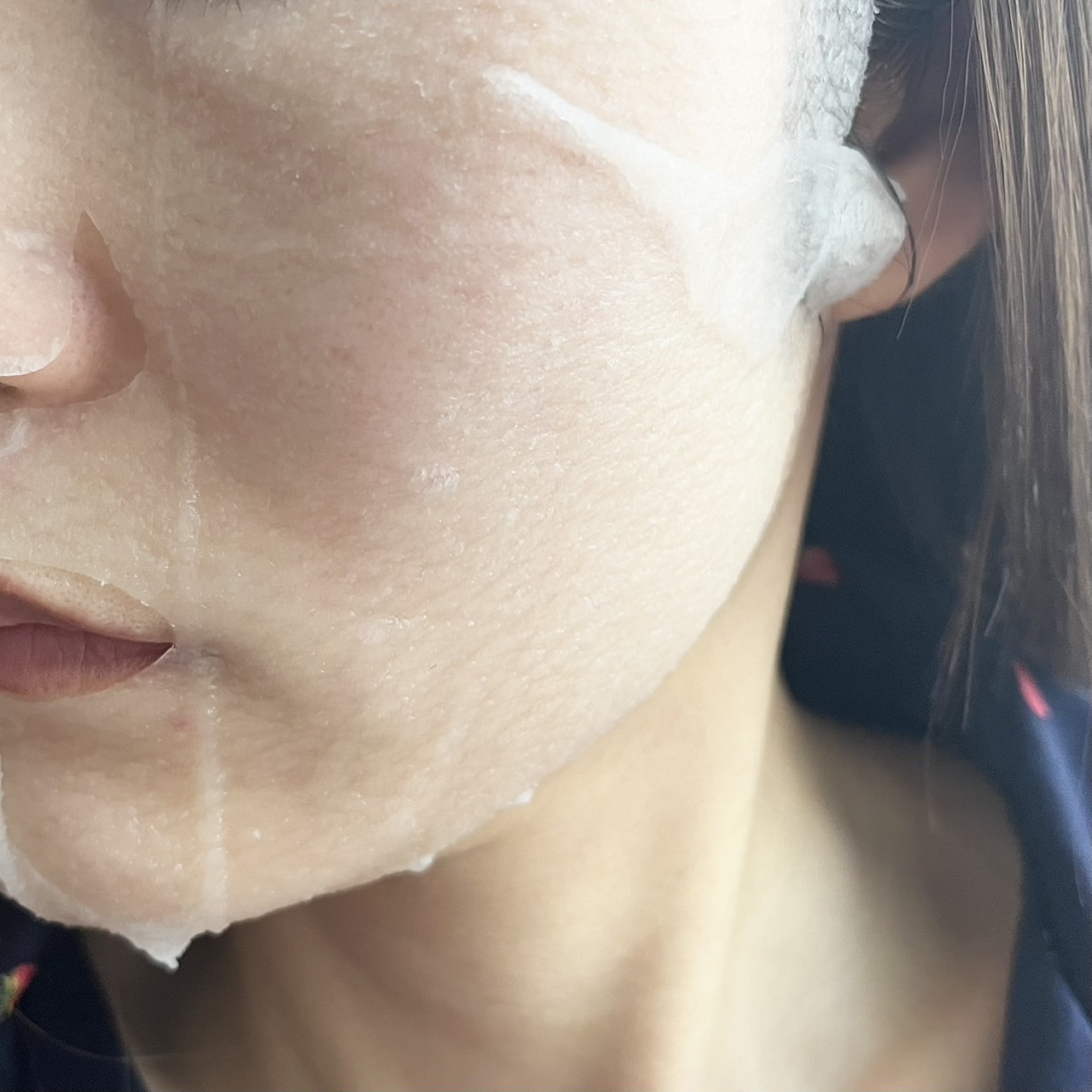 まずこのシートのとぅるとぅるさにびっくり! 「メルティーフィールシート」とのことで、やわらかい〜!!! 付けた後は うるおいでお肌がきゅっとハリが出る感じ✨ シートに液ヒタヒタで絞れるくらい 10分付けた後のシートでも 腕や脚までパッティングできます
