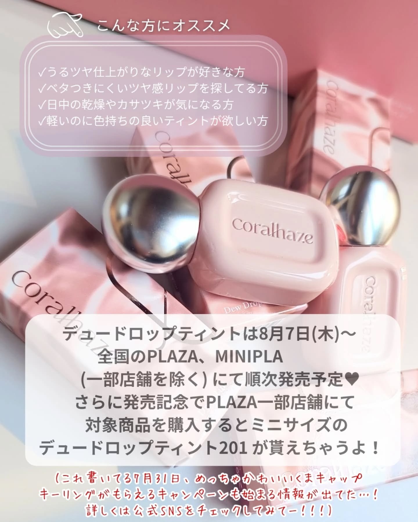 #coralhaze☑︎#デュードロップティント(全8色) ↪︎201フェアリー ↪︎203バブリー ↪︎205ハニーデュー ↪︎209クラッシュ高発色でツヤ感あふれるティント軽い付け心地で、オイルリップの様な付け心地8月7日(木)より...
