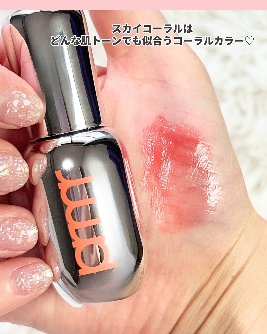 繊細なラメが角度を変えるごとにキラキラしていて 夏っぽい涼しげなブルーがたまらない🥹💕 透明感がアップして 透き通るような少女感がでるのが👍 限定色ということなので 気になる人はお早めに…!