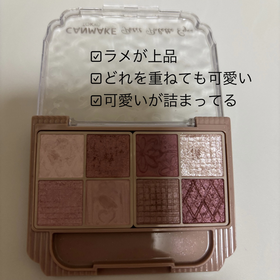 【上品で可愛い🎀ミニョンヌリボン】キャンメイクプティパレットアイズ03ミニョンヌリボン参考価格1,078円(税込)大好きな「キャンメイク」の人気アイパレ!どのカラーを組み合わせてもイイ感じに仕上がるし、マット・パール・ラメの質感がセットされて...