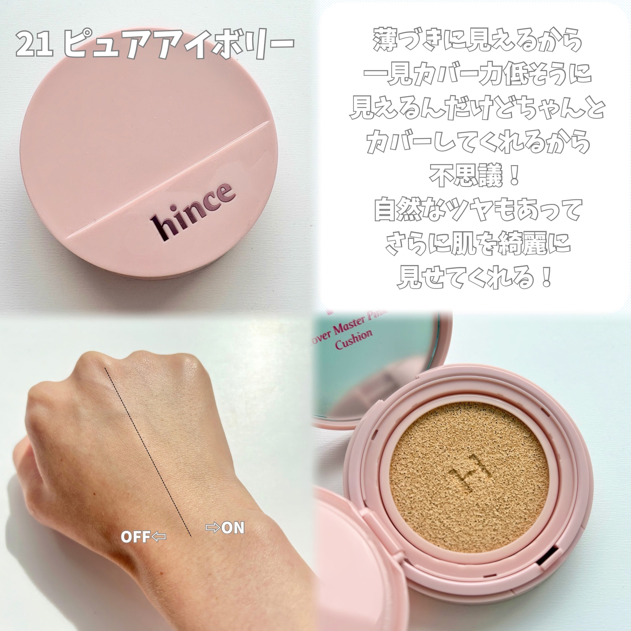 *hinceさまからいただきましたhinceカバーマスターピンククッション。軽やかなのに、気になる毛穴・クマ・色ムラをカバーしてくれるクッションファンデーション✨SPF40/PA++。カラーは、17ライトと21ピュアアイボリーを使用。薄めにサ...