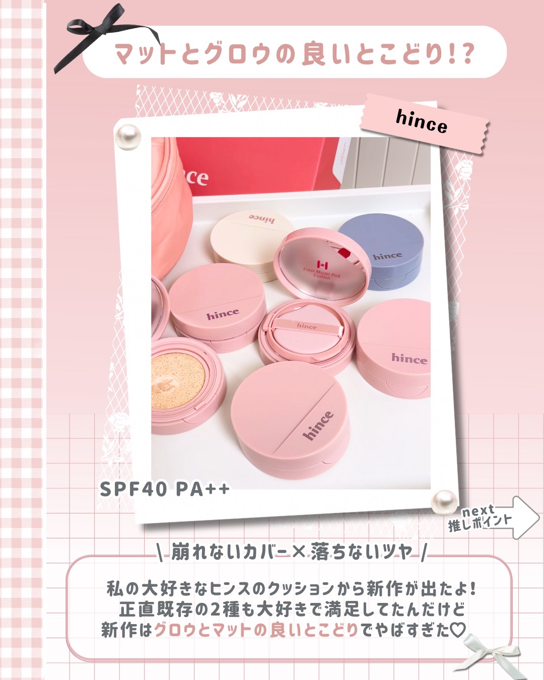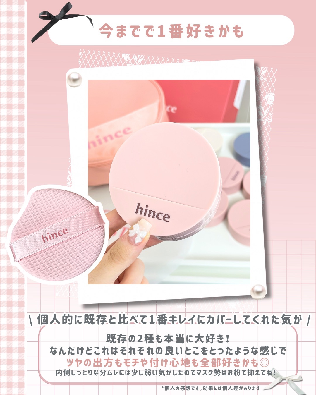 \hince新作クッション🩷🩷/hinceカバーマスターピンククッション🆕15フェアヒンスから新作クッションが登場🩷!!ピンクパケが可愛いっ🥹💗コンシーラー要らずのカバーカで気になるクマ、毛穴、色ムラ、ニキビ跡まで一気にカバーできちゃうよ🙆...
