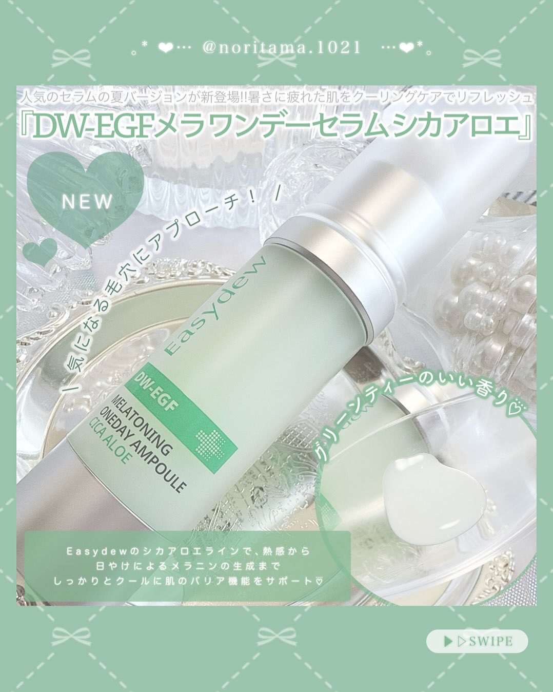 #PR\夏の必須スキンケアアイテム🏄♀✨/Easydew(@easydew_japan)さまからセラム2点をご提供頂きました✨『DW-EGFメラワンデーセラム』ビタミンC誘導体*、ナイアシンアミド*、グルタチオン、トラネキサム酸配合!日焼け...