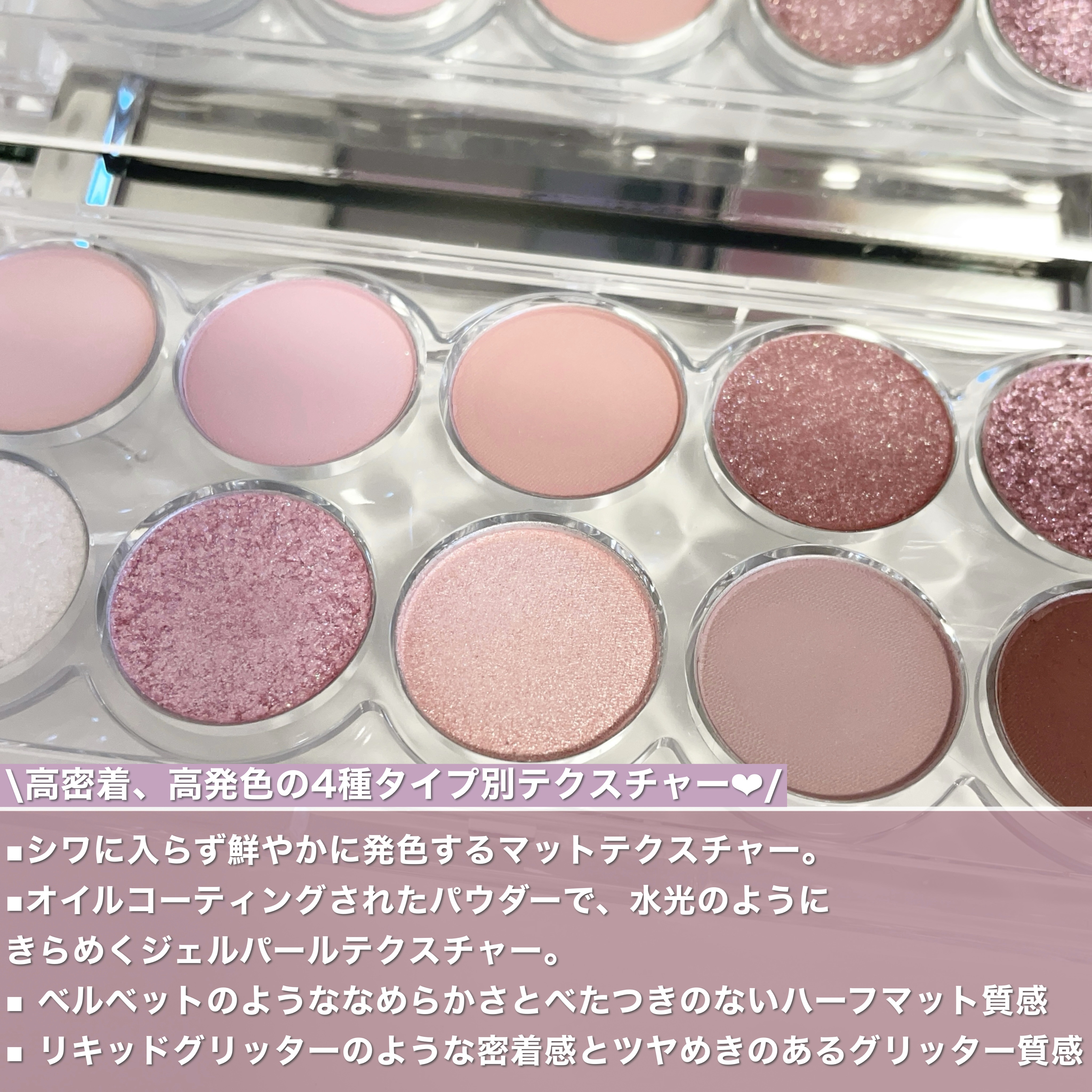 滑らかな塗り心地で粉飛びなく、トレンディなグラデーションメイクが可能なハイクオリティーパレットなんだって🫶🏻 多彩に輝くグリッターとラグジュアリーなムードを込めた新作可愛すぎない!?😭💕 柔らかめのふんわりとした発色でまさにイエベ春の私が求めてたアイシャドウで感動しました😭💕