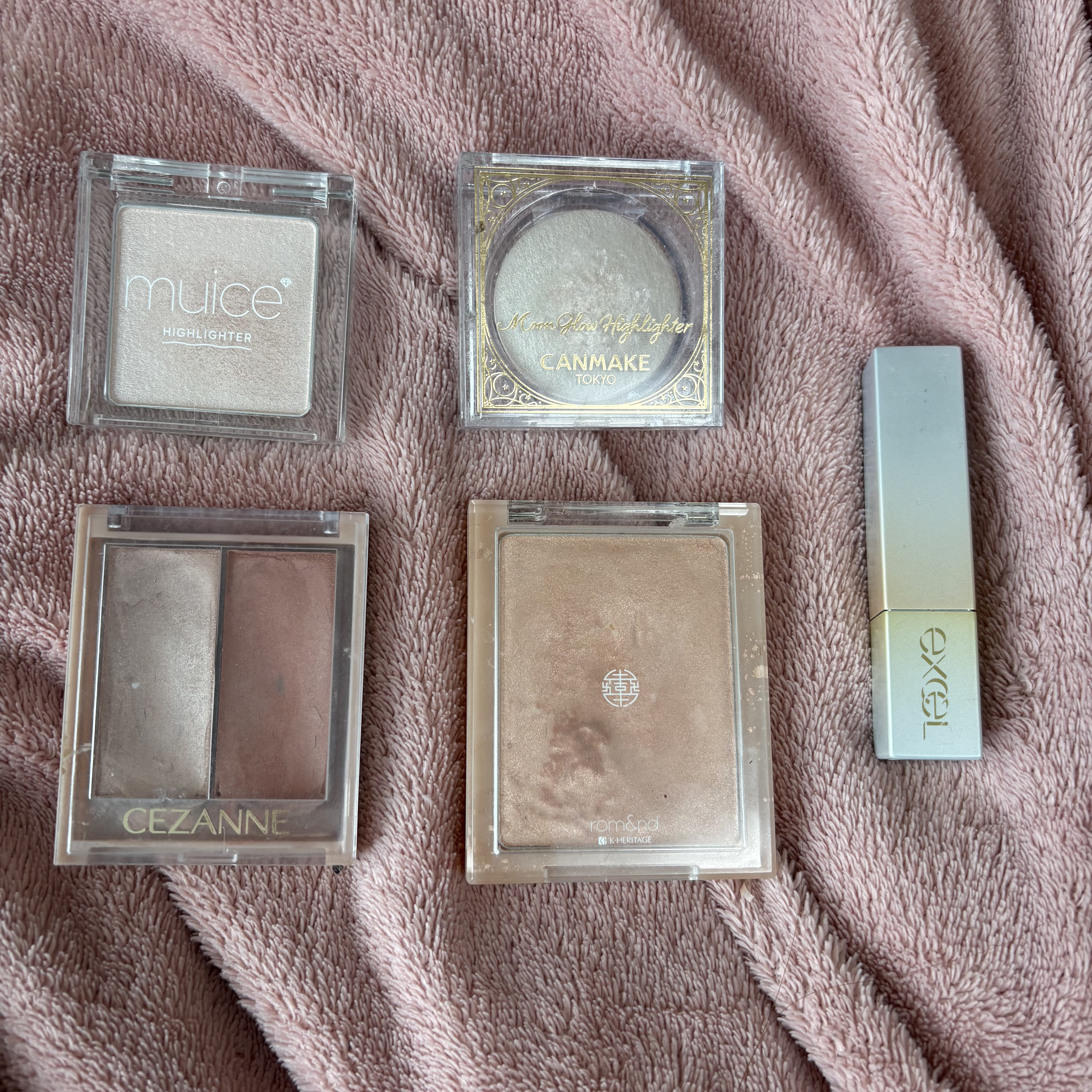 ラメが大粒でちゅるちゅる感がある パーフェクトダイアリーはしっとりしたパウダー、 CHANELは濡れたような質感のバームです! CHANELは保湿感が高いぶん、夏はヨレやすいです。 ふわっと発光して透明感が出る muiceは細かくてしっとりした粉質で、 キラキラ感もありつつ、自然に立体感が出ます。 クレ・ド・ポー ボーテは肌を綺麗に補正しつつ、 自然な立体感が出せます! ナチュラルな艶肌がつくれる ロムアンドは肌に溶け込むシルキーな質感のツヤで、 Diorは華やかさもありつつ、肌に溶け込んで ナチュラルなツヤ肌がつくれます! ギラギラのパールで光沢感たっぷり キャンメイクは透けたような濡れツヤ感で、 セザンヌはギラギラした光沢感があります! 初心者さん向けでナチュラル excelはしっとりした質感でヴェールをかけたような 上品なツヤ感で、キャンメイクはサラサラな粉質で 少し粉飛びがあり、上品なツヤ感です!