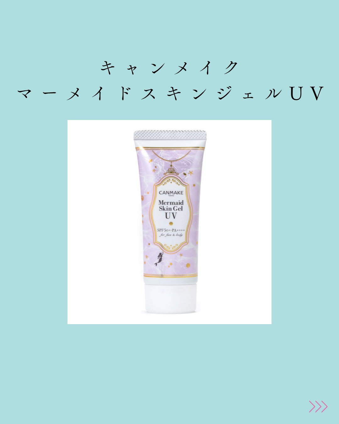 - パシャッと爽快!人魚姫気分♥化粧水感覚で使えるUVジェル 国内最強レベルのUVカット効果で紫外線から肌を守ります。 肌にのばすとパシャッとはじける水感ジェルでみずみずしく軽い仕上がり。 顔だけでなく全身にも使えます。 洗顔後、これ1本でスキンケア・保湿下地・UVカット下地としてご使用いただけます。 ※2~3時間ごとにこまめに塗り直しをしてください。 また、肌をタオル等で拭いた際も塗り直しを推奨いたします。
