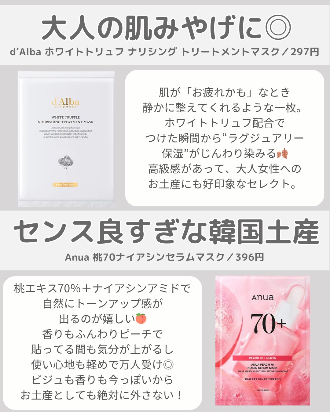 おすすめアイテムAnua×シートマスク・パック