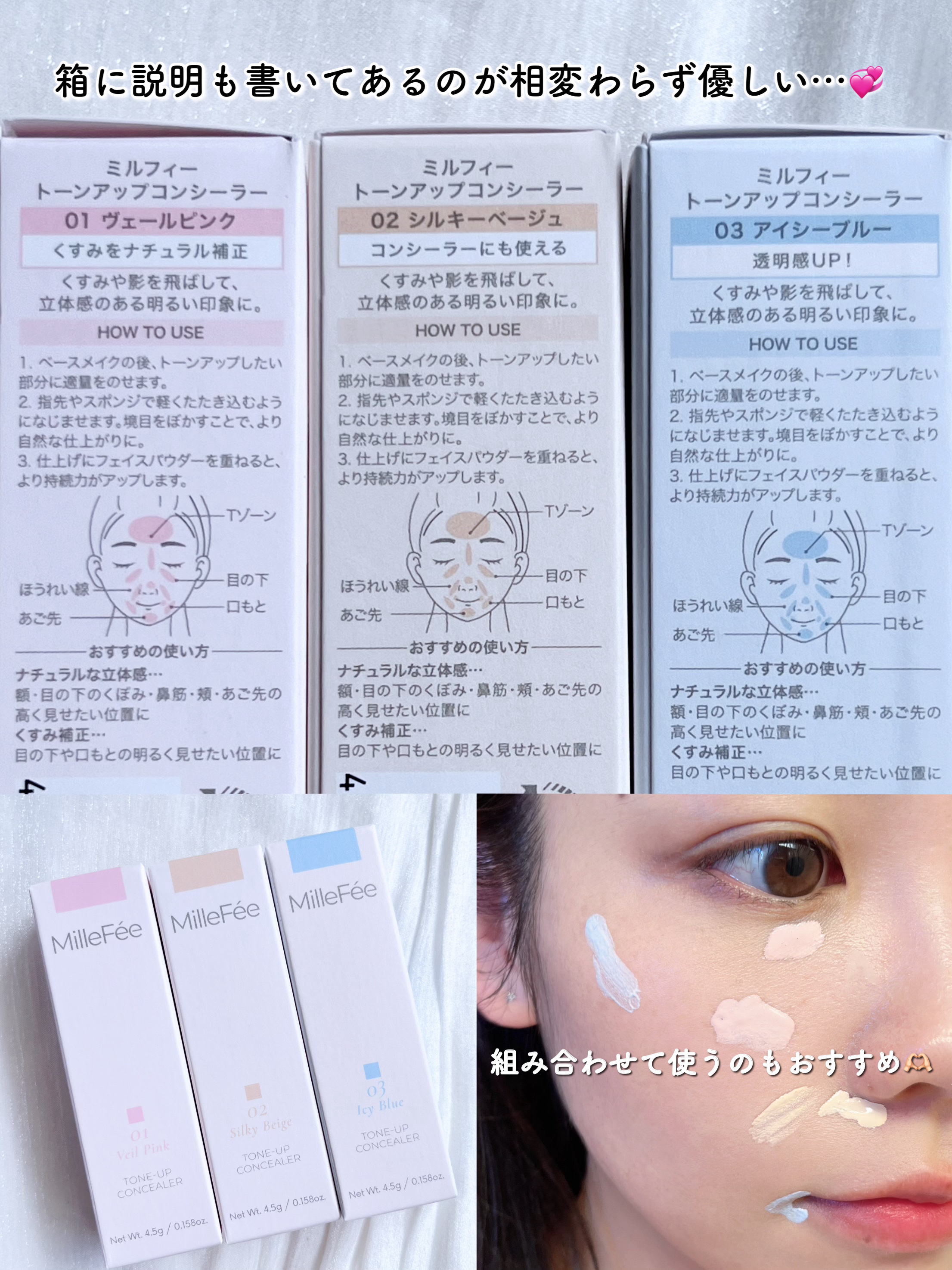 ❤︎@millefee_officialMilleFeeトーンアップコンシーラー01ヴェールピンク03アイシーブルーミルフィーから、トーンアップと補正を叶える便利なスティックコンシーラーが発売🥺🩵気になる肌悩みをカバーしてくれつつ、みず...