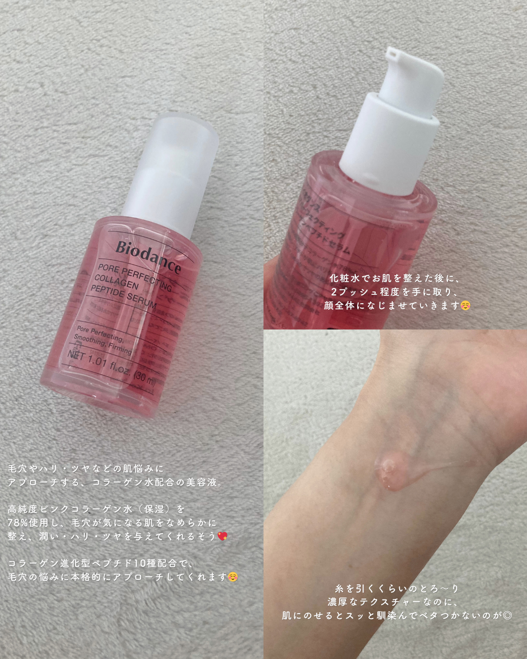 Biodanceポアパーフェクティングコラーゲンペプチドセラム\水で薄めない、高濃度の実力派美容液/高純度ピンクコラーゲン水78%配合毛穴が気になる肌をなめらかに整えうるおい・ハリ・ツヤを与えるてくれるそうテクスチャーは糸ひくような濃厚なとろ...
