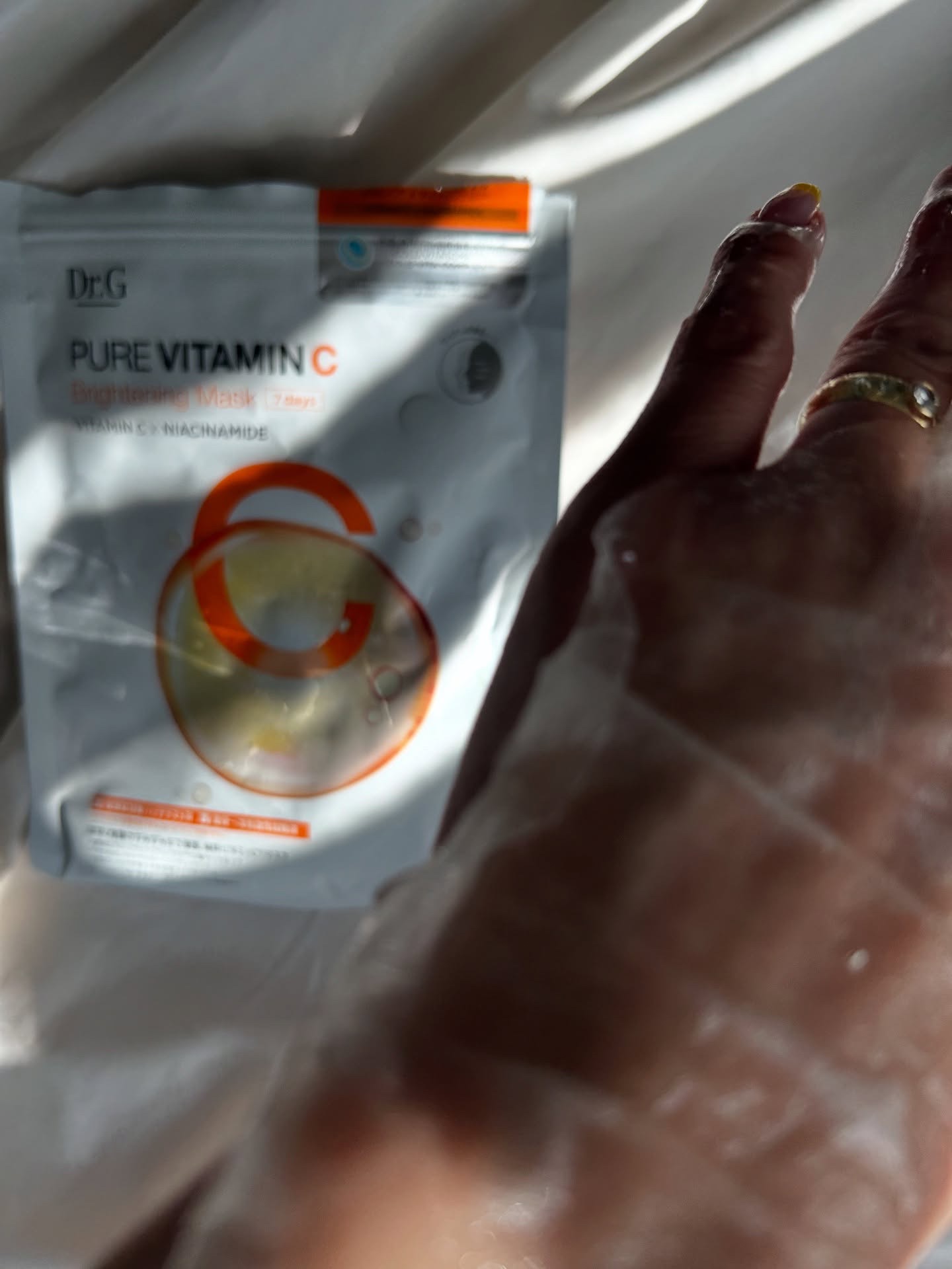 Dr.Gドクタージー🍋『ピュアビタミンCブライトニングマスク』ビタミンC×ナイアシンアミド敏感肌用7枚入り1週間集中ツヤ肌ケアDr.G様から🎁いただきましたありがとうございます💓🪷ほんのり淡〜いオレンジで薄めのシートマスクですがしっかりしてい...