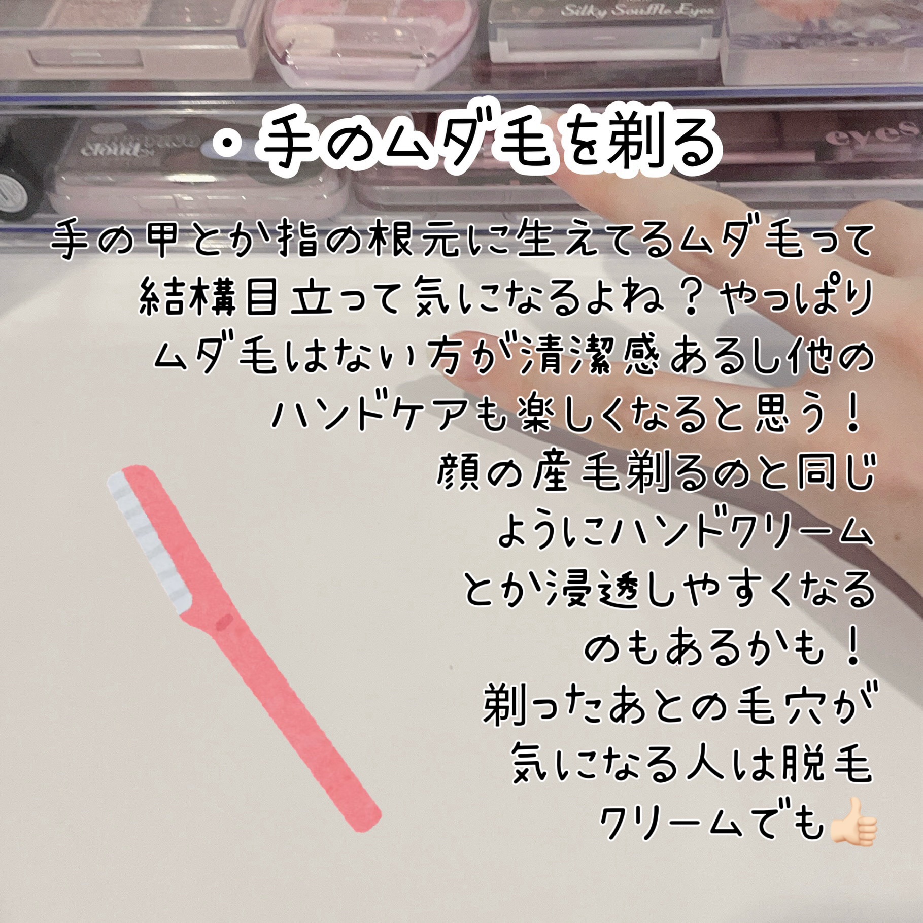 やっぱり化粧水とクリーム、ムダ毛処理、マッサージは必須よね…! 私はこれに追加して、ボディスクラブ使う日は軽くマッサージしながらでもケアするかも🤔