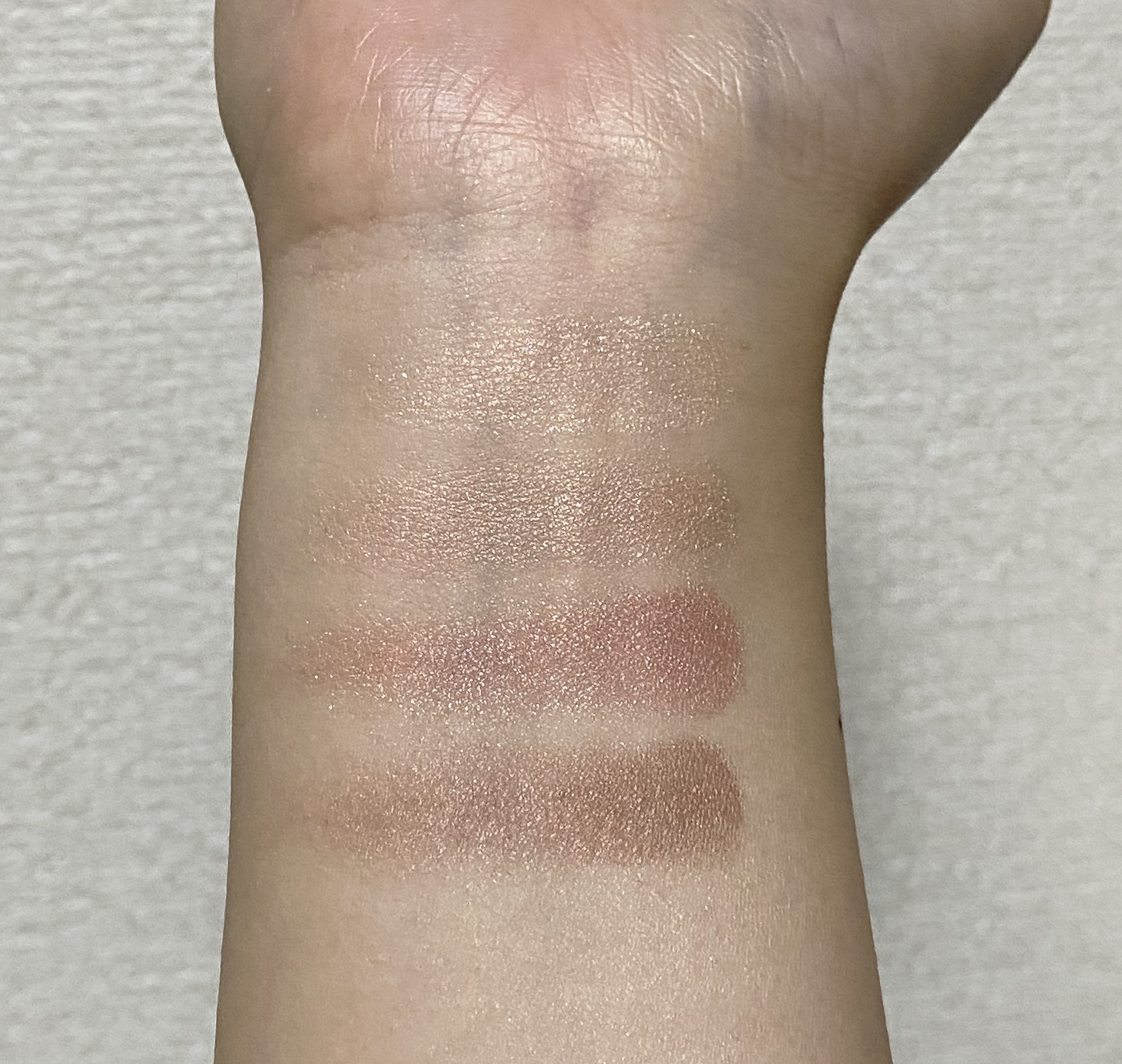 セクシーでかっこいい雰囲気になる大人アイシャドウ 透け感くすみピンク。くすみだけど軽さある仕上がりが美しい⋆✦ ラメ足さなくても全然盛れた! このアイシャドウはまつ毛上げすぎない、カラコン、マスカラは派手にしない方が合うと思ったよ🤍゛ パールの強さはそれぞれ違うけど、3色とも上品で繊細なパール。上段2色は肌なじみにのいいベージュとグレージュカラーこの2色をベースにするとよりくすみ感強めの仕上がりになる。