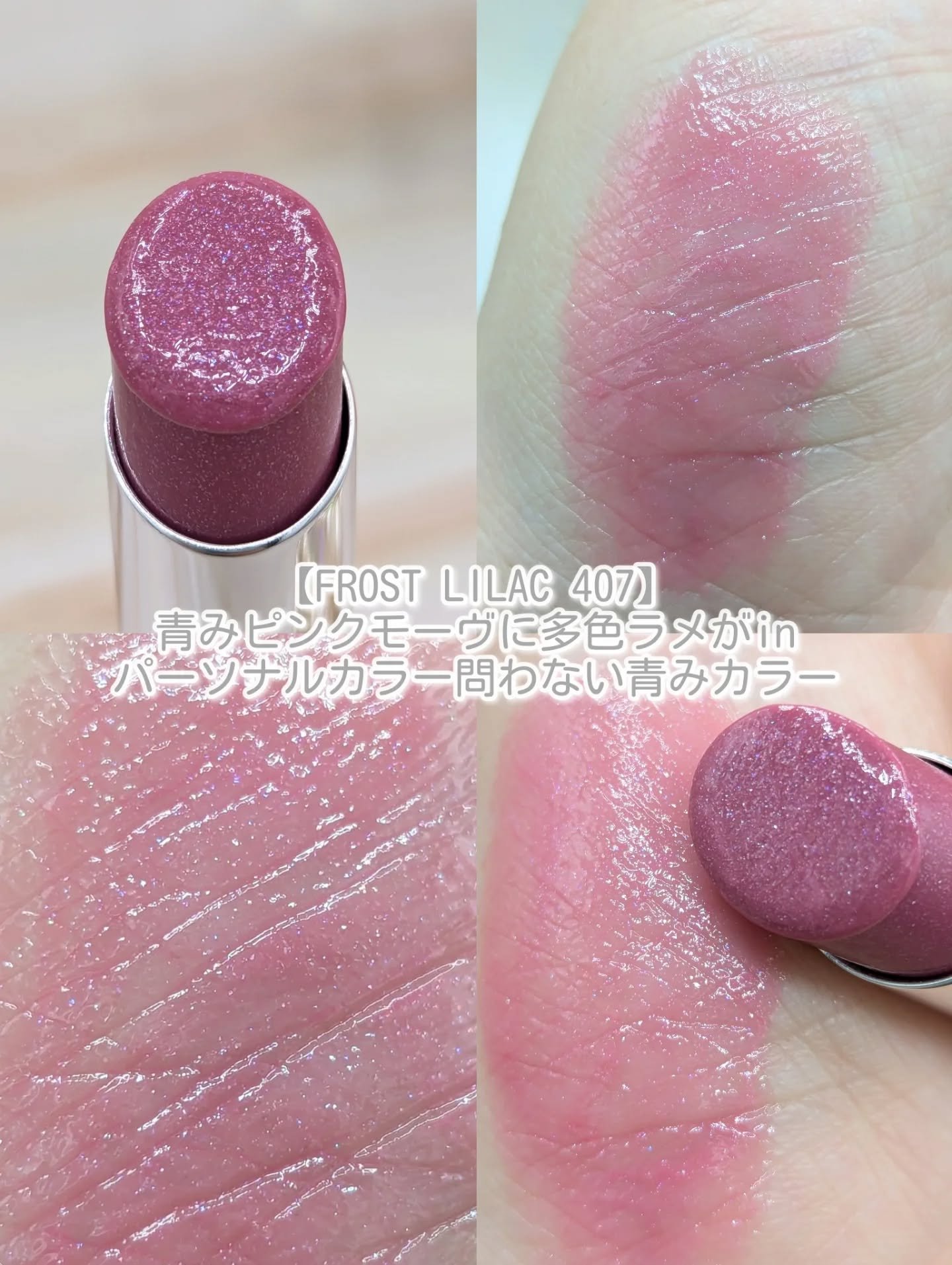 ミニリップモンスターも通常と同様●落ちにくい●高発色●保湿さらに全てラメが特徴ですが●パール剤配合となっています。 色味はどれもとてもいいのだけれど通常のリップモンスターよりかなり薄いのも特徴です。通常のリップモンスターのように唇の色を補正するくらいの発色ではないので、ほんのり感です。ある意味、パーソナルカラー問わないくらい薄いです。 試せるのはいいけど、通常のリプモンがあれだけいいだけに、これで¥880は少し高いかも.......