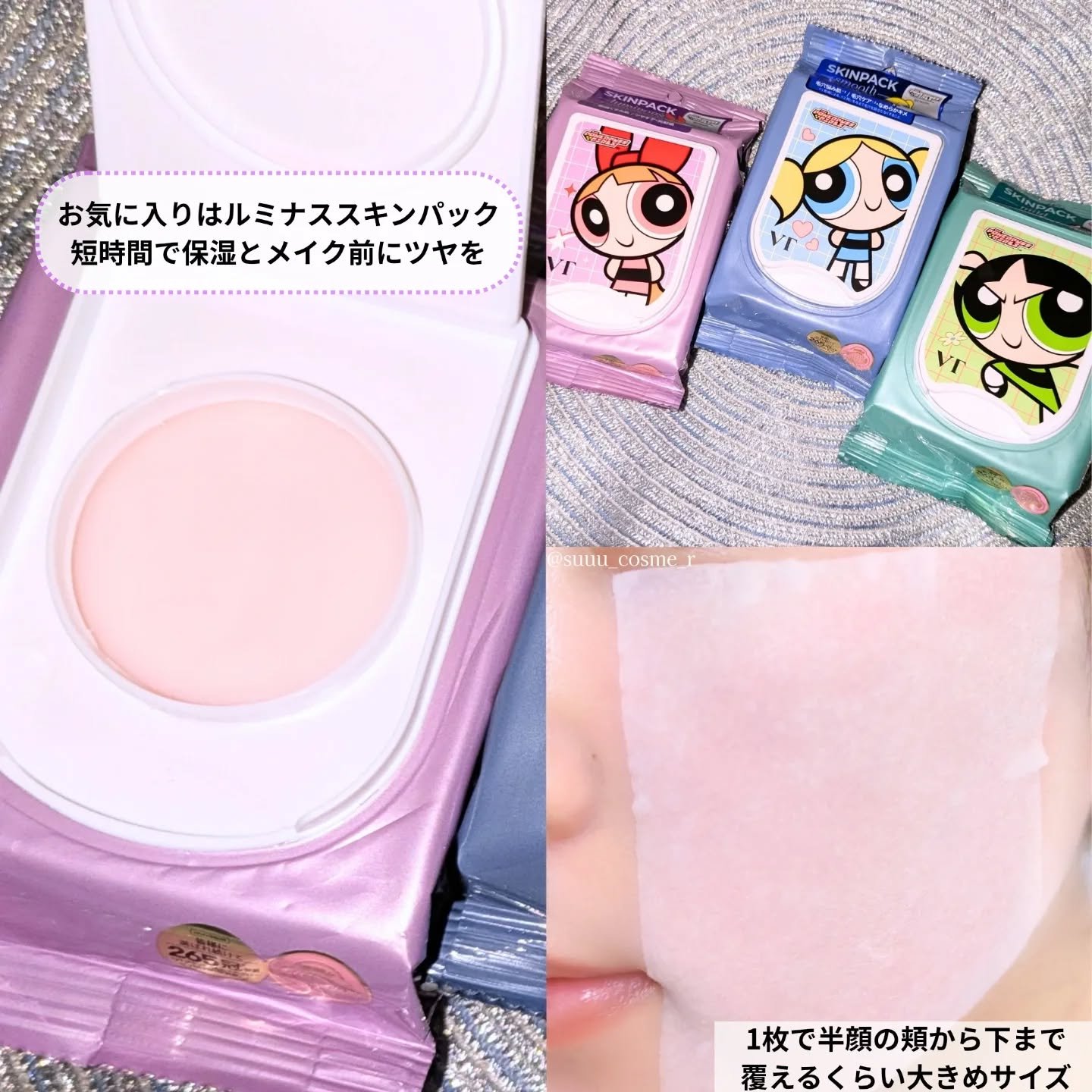 \かわいい朝の時短アイテム!/💗ルミナススキンパック(パワパフ)💙スムーズスキンパック(パワパフ)💚マイルドスキンパック(パワパフ)各1650円8/7(木)よりPLAZA・MINiPLAにて発売スタート!パワパフのパケにテンションが上がります...