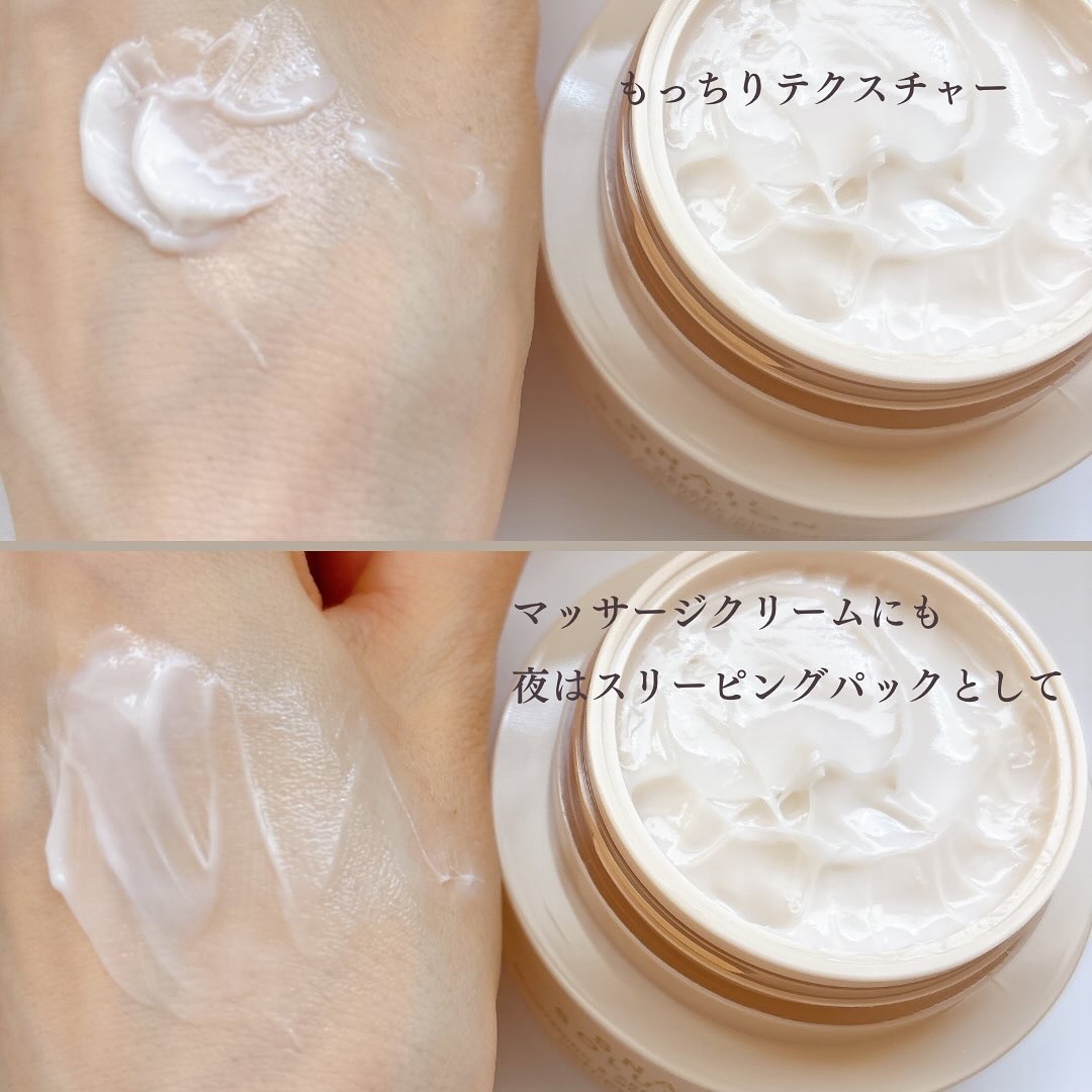 | テクスチャーはとろみのあるリッチなクリームで、肌にのせるととろけるように広がります。 | 詳細を見る | ||