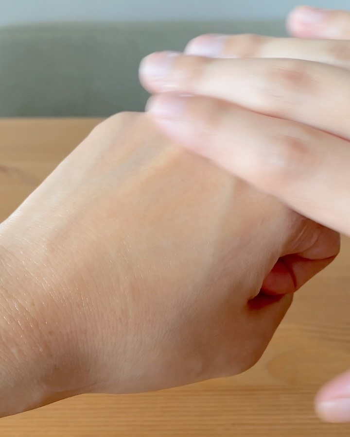 塗布すると、刺激があるわけではないんだけど、なんだかスーっとする感じ🙄🩵これは、発酵シカ・ヒアルロン酸・コーンミントが熱くなった肌の表面温度を下げてくれてるそう🎐 とってもみずみずしいテクスチャーで、日焼け止めの嫌なキシキシ感もなく、まるで乳液のよう💚使い心地、良しです。 ✔️サンゴ礁有害成分排除↪︎海のおでかけにもOK🪸🐠