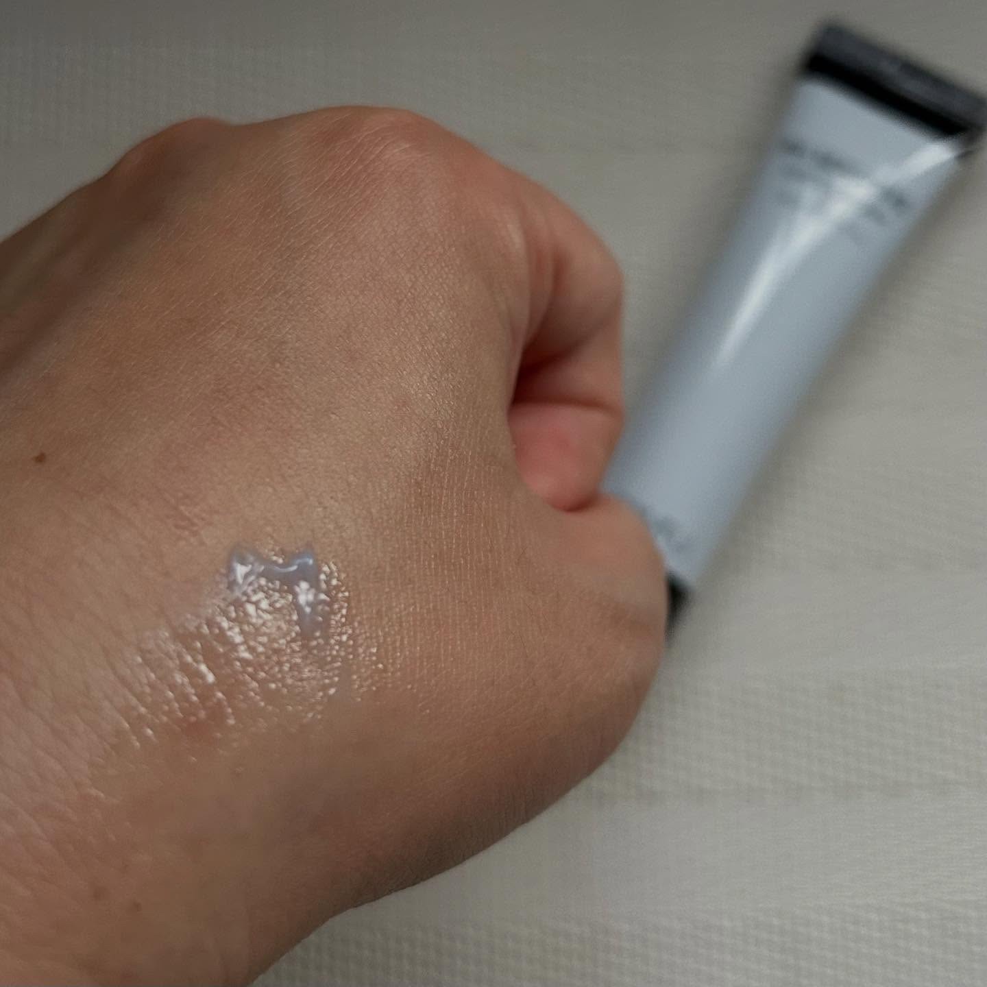 1本4役の万能トーンアップ下地です ①しっかりとUV対策しながら ②肌のハリツヤへもアプローチ✨ ③保湿もしてくれて ④トーンアップ テクスチャーはみずみずしいクリームで 白っぽい薄いラベンダー色🪻 柔らかいので伸びやすいです◎ ラベンダーカラーでくすみを飛ばして 透明感が🆙 ツヤもあります◎