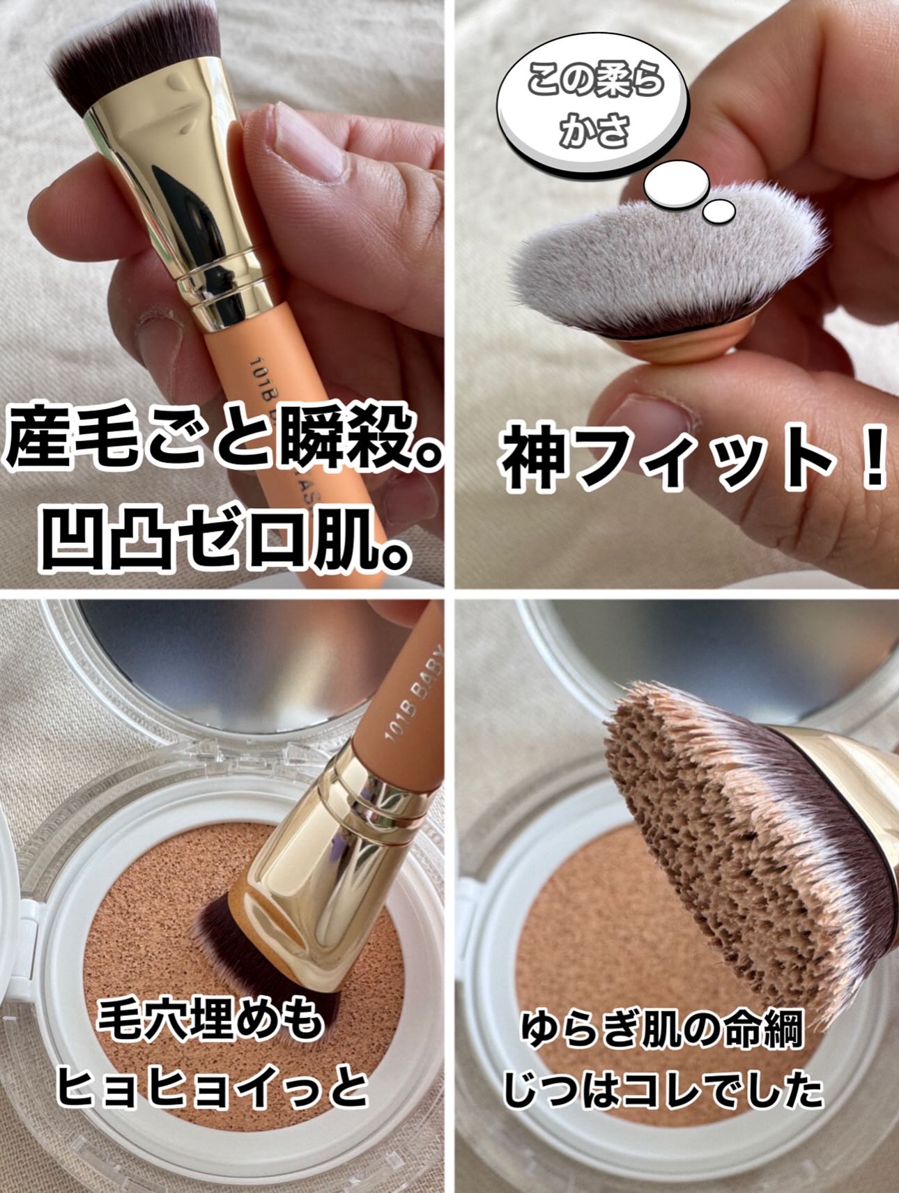 - しっとりツヤ肌に仕上げたい方に。ブラシとパフを組み合わせてベースを重ね、一層密着力のあるベースを完成。ブラシは、幅約13mmの平たいブラシ。薄くてしっとりとした塗り心地を毛穴ブラシに再現。専用のクリアケース付き。ブラシでベースをササっと塗った後、もちっと密着パフでトントンと叩くほどツヤ感UP! #しっとりツヤ肌 #もちっと密着 ベビータカーブラシ(101B type)/グロウフィックスパフ オーバル1枚/専用ケース