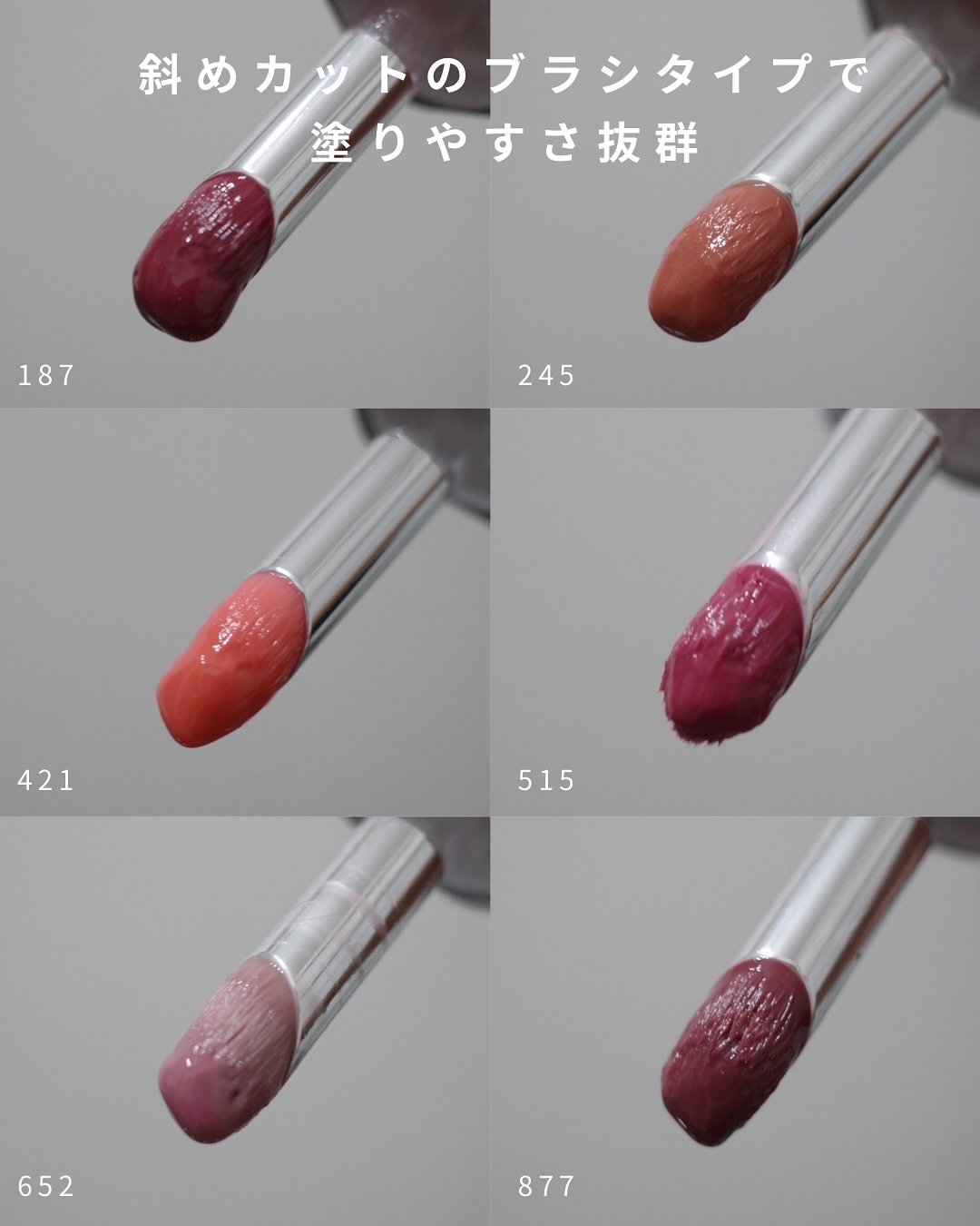 - 硬さが違う2種類の毛をMIXした斜めカットブレンダーで、ぽってりしたオーバーリップを演出! オイルインフューズドテクスチャーで、ツヤ感のある仕上がりに。個性豊かでバランスの取れた全6色のカラーバリエーション。