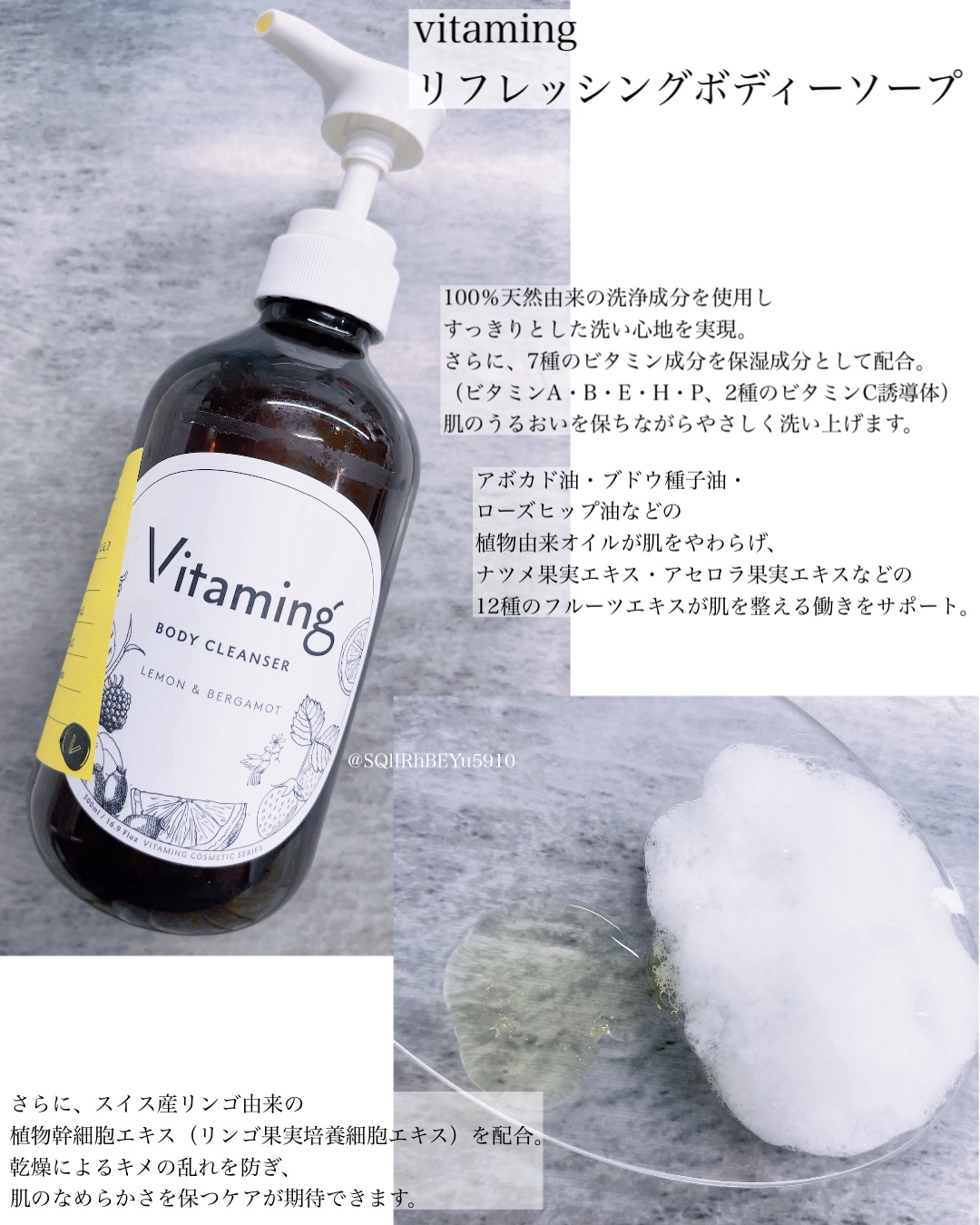 商品詳細情報Vitaming リフレッシングボディソープ(レモン&ベルガモットの香り)