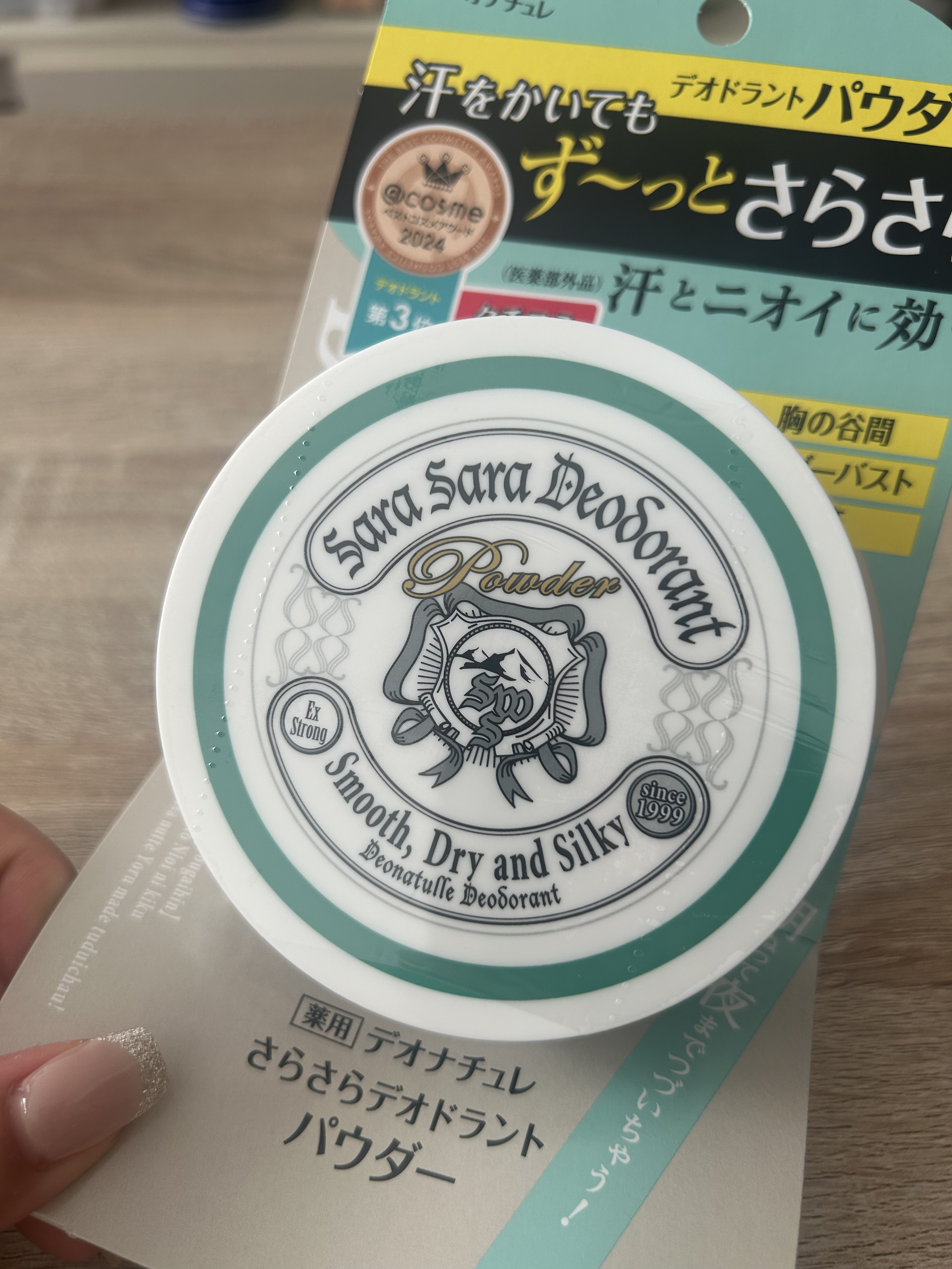 - \11年間ず~っと売上No.1*直ヌリ制汗デオドラントブランド/ 『防臭力のデオナチュレ』シリーズから、ボディ用制汗・防臭パウダー 「薬用デオナチュレ さらさらデオドラントパウダー」 ボディのベタ汗・ムレ・ニオイを防ぐ 合成香料・着色料・アルコール・タルク・防腐剤 無配合 ◆◆汗っかきさん、その胸の谷間のベタ汗は、ニオイの原因に!◆◆ ・胸の谷間、アンダーバストのベタ汗を防いで、ニオイも抑える ・首筋、太もも裏のベタつきにも ◆◆ユーザーから選ばれる理由◆◆ 1.天然アルム石に着目。有効成分「焼ミョウバン」を配合し、汗・ニオイを元から防ぐ! 「薬用デオナチュレ さらさらデオドラントパウダー」は、有効成分「焼ミョウバン」を配合 さらに、皮脂吸収さらさらパウダー**が汗や皮脂を吸収して長時間ベタつかない 2.大判パフで、“直ヌリ”で肌さらさら!さらさら感、続いちゃう! 3.つけるときに、ほんのり香る、天然ゼラニウムの香り ==注意== ●顔・粘膜・陰部を避け、除脱毛直後や肌に異常があるときは使用しないでください。●肌に異常が生じていないかよく注意してご使用ください。また、お肌に合わないとき、使用中に赤み、はれ、かゆみ、刺激、色抜け(白斑等)や黒ずみ等の異常があらわれたときは、使用を中止し、皮フ科専門医等にご相談ください。●使用後はフタをしっかり閉め、直射日光や高温多湿を避けて保管してください。●乳幼児の手の届かないところに置いてください。●パウダーは出来るだけ吸い込まないように注意してください。●衣服などにつかないようにご注意ください。●目にはいらないように注意し、入ったときはすぐに充分に洗い流してください。 【詰め替え時の注意点】 ・パウダーの飛び散りにご注意ください。 ・中皿をしっかりと閉めてください。 ・詰め替え後は、6か月以内にご使用ください。 販売名:DN薬用デオドラントパウダーFc *インテージSRI+制汗剤市場 2013年5月~2024年4月 ソフトストーンW(販売名:デオナチュレソフトストーンEX(リニューアル前処方)・DN薬用スティックFe)累計販売金額 **基剤:無水ケイ酸、基剤:ケイ酸Ca
