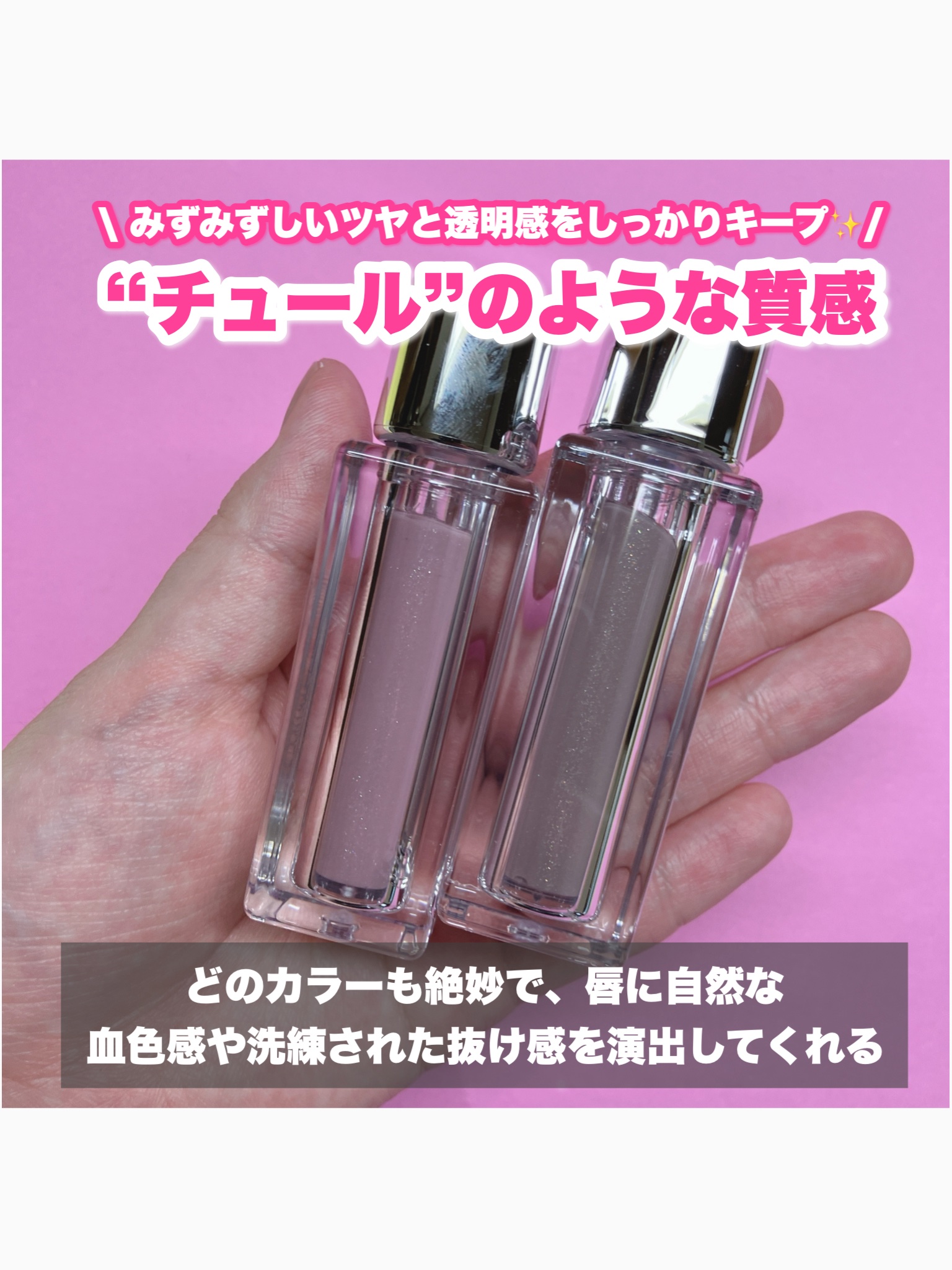 とろっとぷるつや水光仕上がり。水光の鏡面仕上げで透け感のある艶やかさ。なめらかに伸び、快適で心地よい使用感。 J08 チェンマイの甘い桃を選びました🍑 みずみずしい甘い桃のスイートピーチピンクカラー✨ ぷるぷるの唇にしてくれるので乾燥する季節に特におすすめ✨ カラバリも豊富なので自分の好きな色が見つけられます🥰