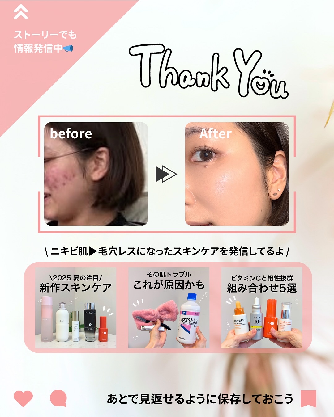 正しい情報だけじゃなくて誤った情報も流れてるけど、情報の取捨選択をするのは自分自身😌 自分の身は自分で守ろう 疑うこと、自分で調べること!これが大切です。 5年かけてニキビ肌から毛穴レスになった《インキャ薬剤師のなぎ》のアカウント🐣