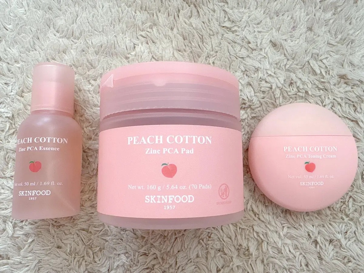 #PR韓国で話題のSKINFOOD(スキンフード)新作ピーチコットンライン🍑8月に日本上陸!ピーチコットンジンクPCAパッドとエッセンスとトーニングクリーム。皮脂ケアや夏のメイク持続にも◎ライン使いおすすめ🩷さらりとして夏にぴったり✨#スキン...