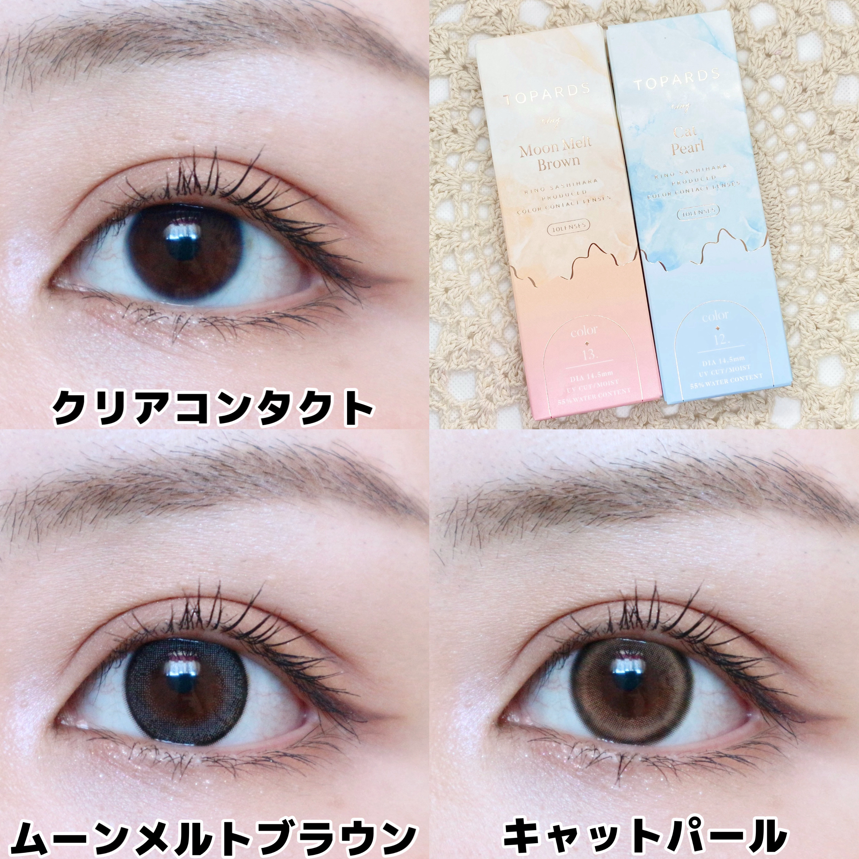 \TOPARDS新色登場💖/TOPARDSからうるっときらめく美人盛れする新色が登場✨◼︎TOPARDSムーンメルトブラウンキャットパールDIA:14.5mmGDIA:13.7mmBC:8.6mm価格:税込1,760円(1箱10枚入り)🌛ムー...