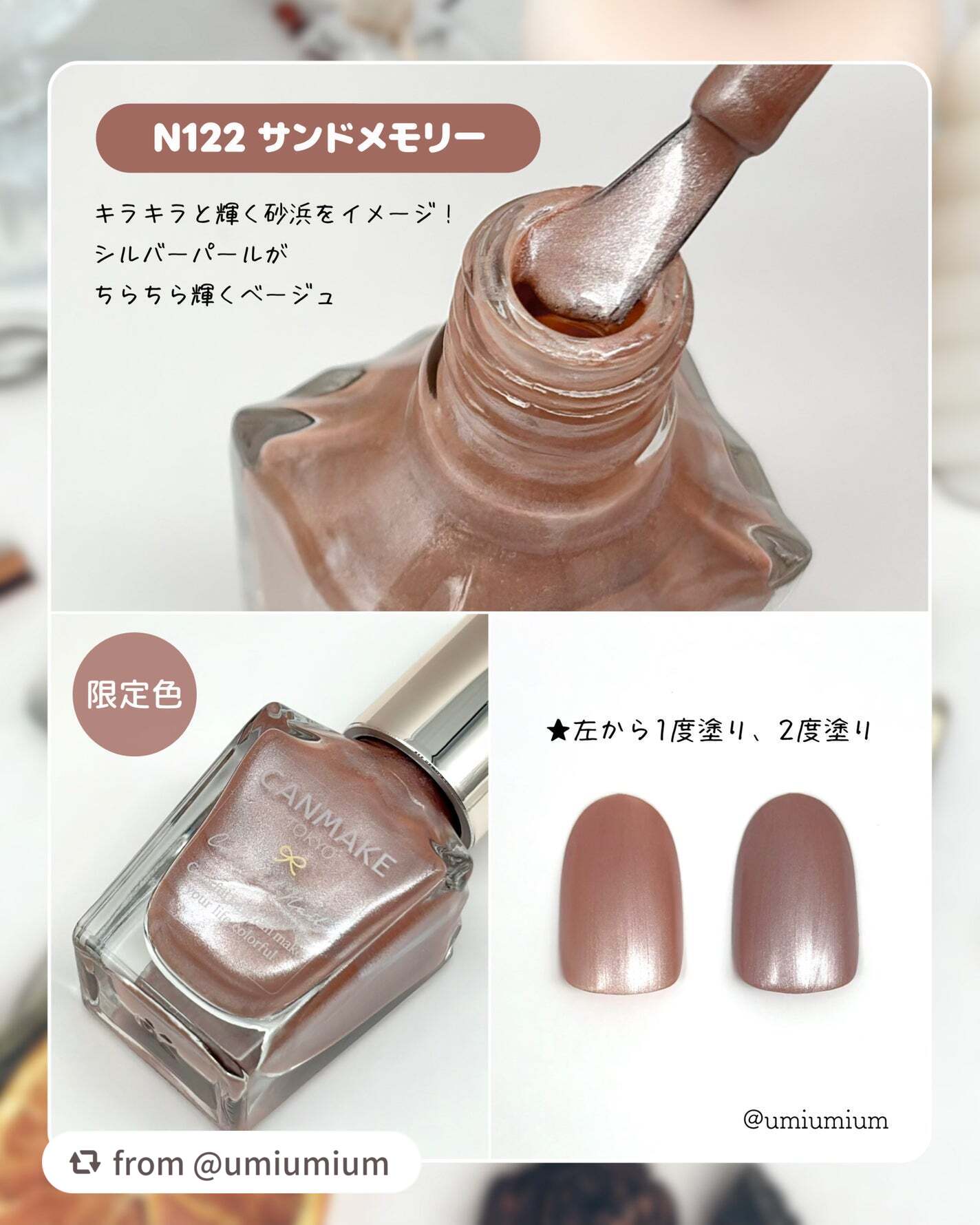 - ※2023年2月下旬〜順次ブラシの形状をラウンド状へ、ラベルデザインをリボンマークへリニューアル。 ※2025年2月下旬~順次N08・N32の全成分変更 ※2025年3月上旬~順次キャップデザインをリニューアル。 尚、リニューアルにかかる返品交換等は承っておりません。 カラフルな色揃えで、全色集めたくなるかわいさ! ツヤ・持ち・塗りやすさ3拍子そろったベース処方を採用! 見とれる程の美しい仕上がりに。 こすれに強く、ツヤツヤと濡れたような質感が長持ちします。