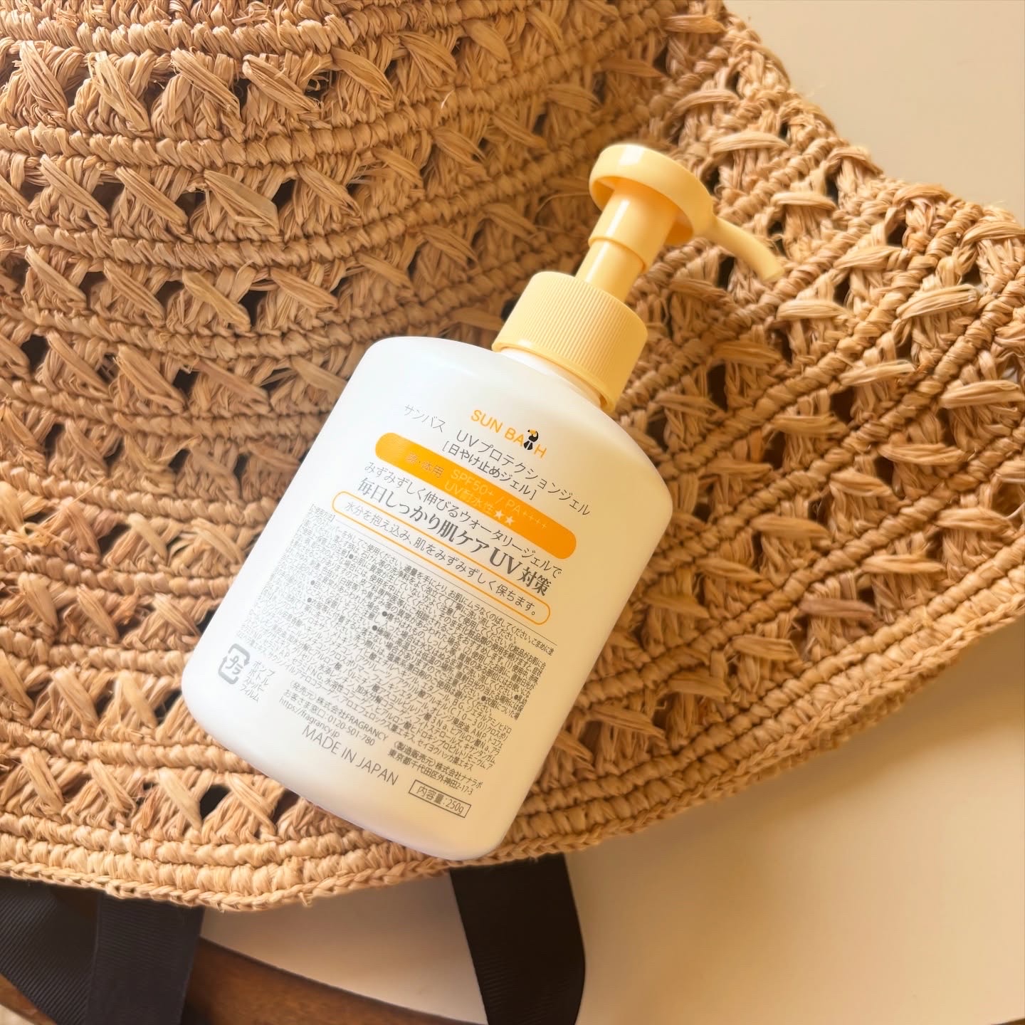 ♡SUNBATH/♡サンバス UVプロテクションジェル全身サッと塗れて、親子で使える、ウォータリーUVジェル。SPF50+・PA++++顔・体用 スゥ〜ッと伸びて密着サラサラ。14種の保湿成分配合で日焼けした夏肌の乾燥を守る! 紫外線をしっか...