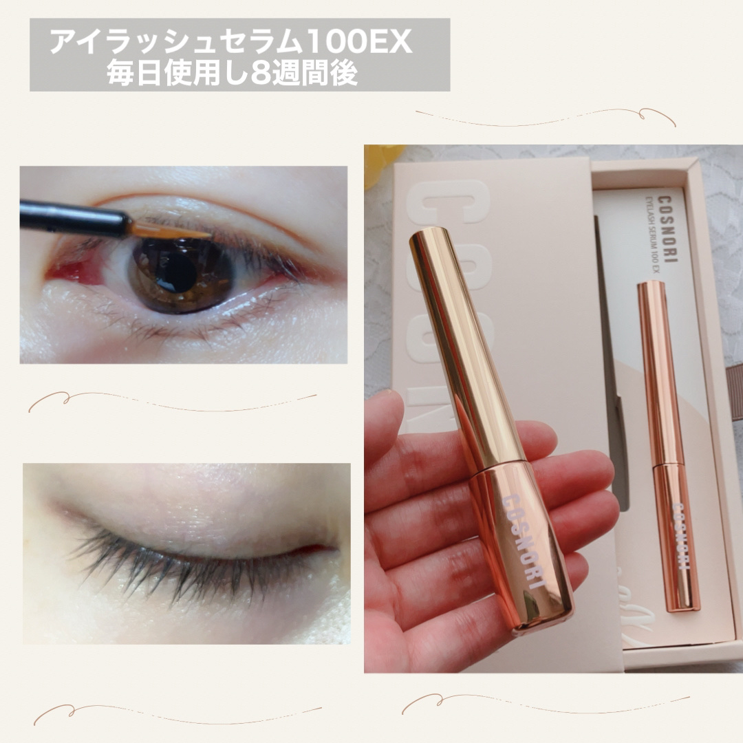 コスノリ様から頂いたアイラッシュセラム100EXを8週間使用してみました✨細筆タイプのまつ毛美容液なので、毎晩寝る前にさっと塗るだけで簡単🥰まつ毛もハリがでたように感じます💕※レビュー内容は個人の感想であり効果を証明するものではありません。毎...