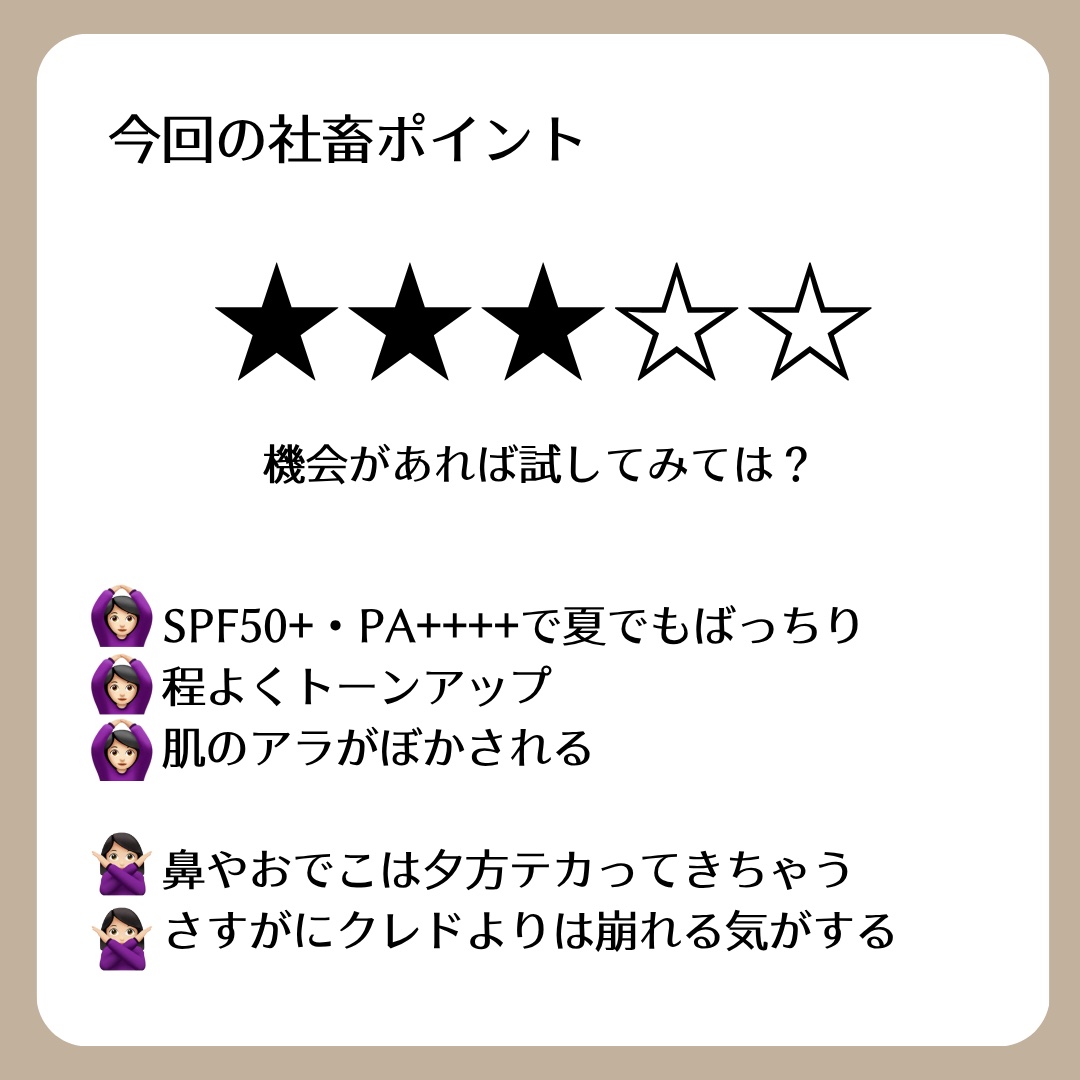 | ベースメイクランキング第50位 | 乳液のように軽く伸ばしやすいけど、重くないのがお気に入りポイント♡ | 詳細を見る | |