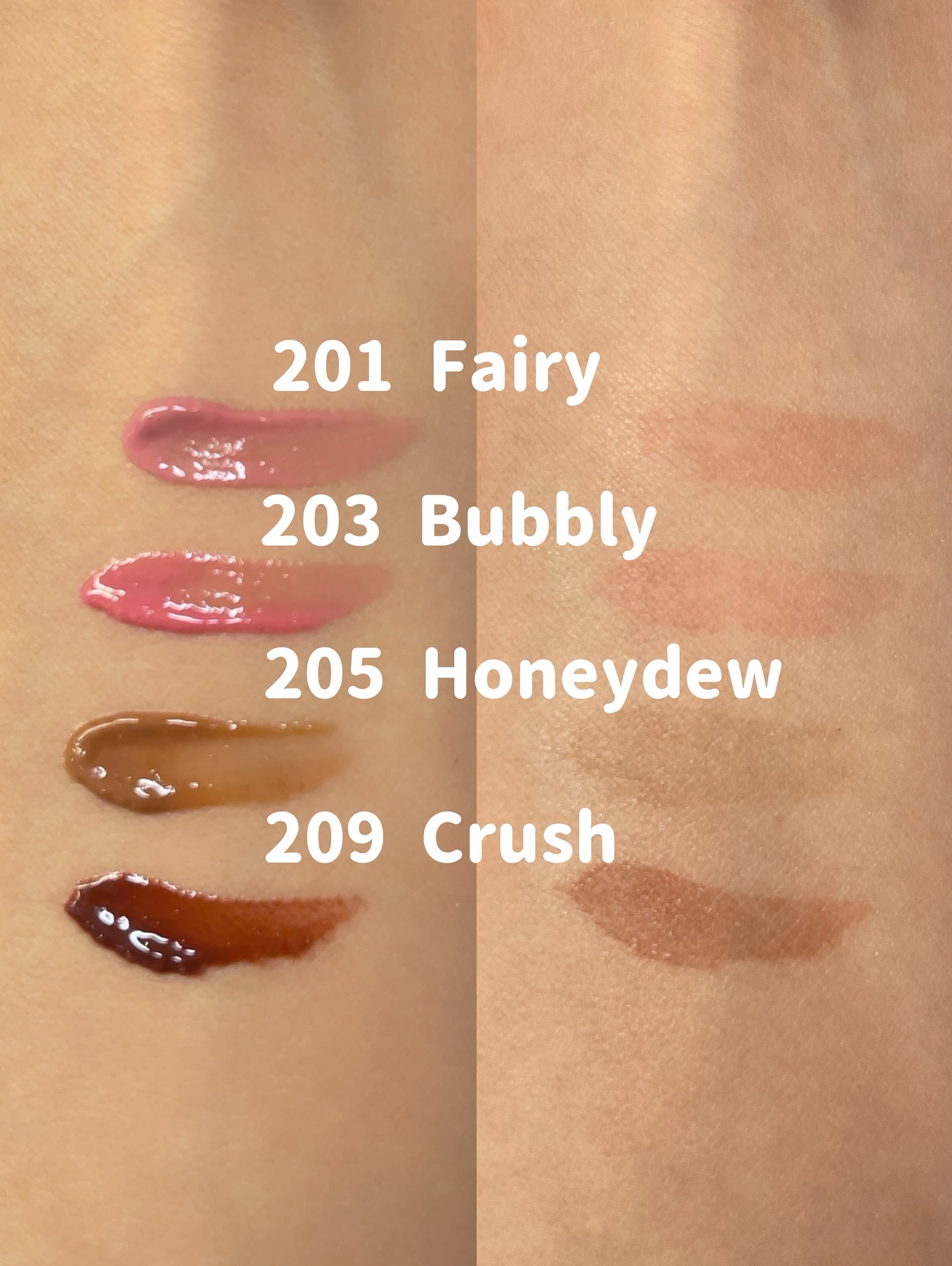 - <201 フェアリー> ダイマージリノール酸ジイソステアリル、ジフェニルシロキシフェニルトリメチコン、ビスジグリセリルポリアシルアジペート-2、水、ジフェニルジメチコン、水添ポリイソブテン、セチルPEG/PPG-10/1ジメチコン、ポリソルベート60、ペンチレングリコール、グリセリン、イソステアリン酸ポリグリセリル-4、フェノキシエタノール、1,2-ヘキサンジオール、セテアレス-20、酸化チタン (CI 77891)、(アクリル酸ヒドロキシエチル/アクリロイルジメチルタウリンNa)コポリマー、ステビオシド、スクワラン、香料、ジラウラミドグルタミドリシンNa、エチルヘキシルグリセリン、エチレンジアミンジコハク酸3Na、赤色227号 (CI 17200)、水酸化Al、黄色5号 (CI 15985)、ポリアクリル酸アンモニウム、イソステアリン酸ソルビタン、黄色4号 (CI 19140)、BG、赤色223号 (CI 45410)、青色1号 (CI 42090)、アラントイン、パンテノール、ツボクサエキス、ヒアルロン酸、加水分解ヒアルロン酸、ヒアルロン酸Na <203 バブリー> ダイマージリノール酸ジイソステアリル、ジフェニルシロキシフェニルトリメチコン、ビスジグリセリルポリアシルアジペート-2、水、ジフェニルジメチコン、水添ポリイソブテン、セチルPEG/PPG-10/1ジメチコン、ポリソルベート60、ペンチレングリコール、グリセリン、イソステアリン酸ポリグリセリル-4、フェノキシエタノール、1,2-ヘキサンジオール、セテアレス-20、(アクリル酸ヒドロキシエチル/アクリロイルジメチルタウリンNa)コポリマー、ステビオシド、酸化チタン (CI 77891)、スクワラン、香料、ジラウラミドグルタミドリシンNa、エチルヘキシルグリセリン、赤色227号 (CI 17200)、エチレンジアミンジコハク酸3Na、黄色5号 (CI 15985)、イソステアリン酸ソルビタン、水酸化Al、ポリアクリル酸アンモニウム、黄色4号 (CI 19140)、BG、青色1号 (CI 42090)、アラントイン、パンテノール、ツボクサエキス、ヒアルロン酸、加水分解ヒアルロン酸、ヒアルロン酸Na <204 レア> ダイマージリノール酸ジイソステアリル、ジフェニルシロキシフェニルトリメチコン、ビスジグリセリルポリアシルアジペート-2、水、ジフェニルジメチコン、水添ポリイソブテン、セチルPEG/PPG-10/1ジメチコン、ポリソルベート60、ペンチレングリコール、グリセリン、イソステアリン酸ポリグリセリル-4、フェノキシエタノール、1,2-ヘキサンジオール、セテアレス-20、(アクリル酸ヒドロキシエチル/アクリロイルジメチルタウリンNa)コポリマー、酸化チタン (CI 77891)、ステビオシド、スクワラン、香料、ジラウラミドグルタミドリシンNa、エチルヘキシルグリセリン、赤色227号 (CI 17200)、黄色5号 (CI 15985)、エチレンジアミンジコハク酸3Na、イソステアリン酸ソルビタン、水酸化Al、ポリアクリル酸アンモニウム、黄色4号 (CI 19140)、青色1号 (CI 42090)、BG、アラントイン、パンテノール、ツボクサエキス、ヒアルロン酸、加水分解ヒアルロン酸、ヒアルロン酸Na <205 ハニーデュー> ダイマージリノール酸ジイソステアリル、ジフェニルシロキシフェニルトリメチコン、ビスジグリセリルポリアシルアジペート-2、水、ジフェニルジメチコン、水添ポリイソブテン、セチルPEG/PPG-10/1ジメチコン、ポリソルベート60、ペンチレングリコール、グリセリン、イソステアリン酸ポリグリセリル-4、フェノキシエタノール、1,2-ヘキサンジオール、セテアレス-20、(アクリル酸ヒドロキシエチル/アクリロイルジメチルタウリンNa)コポリマー、酸化チタン (CI 77891)、ステビオシド、スクワラン、香料、ジラウラミドグルタミドリシンNa、エチルヘキシルグリセリン、赤色227号 (CI 17200)、黄色5号 (CI 15985)、エチレンジアミンジコハク酸3Na、イソステアリン酸ソルビタン、水酸化Al、ポリアクリル酸アンモニウム、黄色4号 (CI 19140)、青色1号 (CI 42090)、BG、アラントイン、パンテノール、ツボクサエキス、ヒアルロン酸、加水分解ヒアルロン酸、ヒアルロン酸Na <206 トフィー> ダイマージリノール酸ジイソステアリル、ジフェニルシロキシフェニルトリメチコン、ビスジグリセリルポリアシルアジペート-2、水、ジフェニルジメチコン、水添ポリイソブテン、セチルPEG/PPG-10/1ジメチコン、ポリソルベート60、ペンチレングリコール、グリセリン、イソステアリン酸ポリグリセリル-4、フェノキシエタノール、1,2-ヘキサンジオール、セテアレス-20、(アクリル酸ヒドロキシエチル/アクリロイルジメチルタウリンNa)コポリマー、ステビオシド、スクワラン、香料、ジラウラミドグルタミドリシンNa、酸化チタン (CI 77891)、エチルヘキシルグリセリン、黄色5号 (CI 15985)、エチレンジアミンジコハク酸3Na、黄色4号 (CI 19140)、赤色227号 (CI 17200)、イソステアリン酸ソルビタン、赤色223号 (CI 45410)、青色1号 (CI 42090)、水酸化Al、ポリアクリル酸アンモニウム、BG、アラントイン、パンテノール、ツボクサエキス、ヒアルロン酸、加水分解ヒアルロン酸、ヒアルロン酸Na <207 フレイム> ダイマージリノール酸ジイソステアリル、ジフェニルシロ