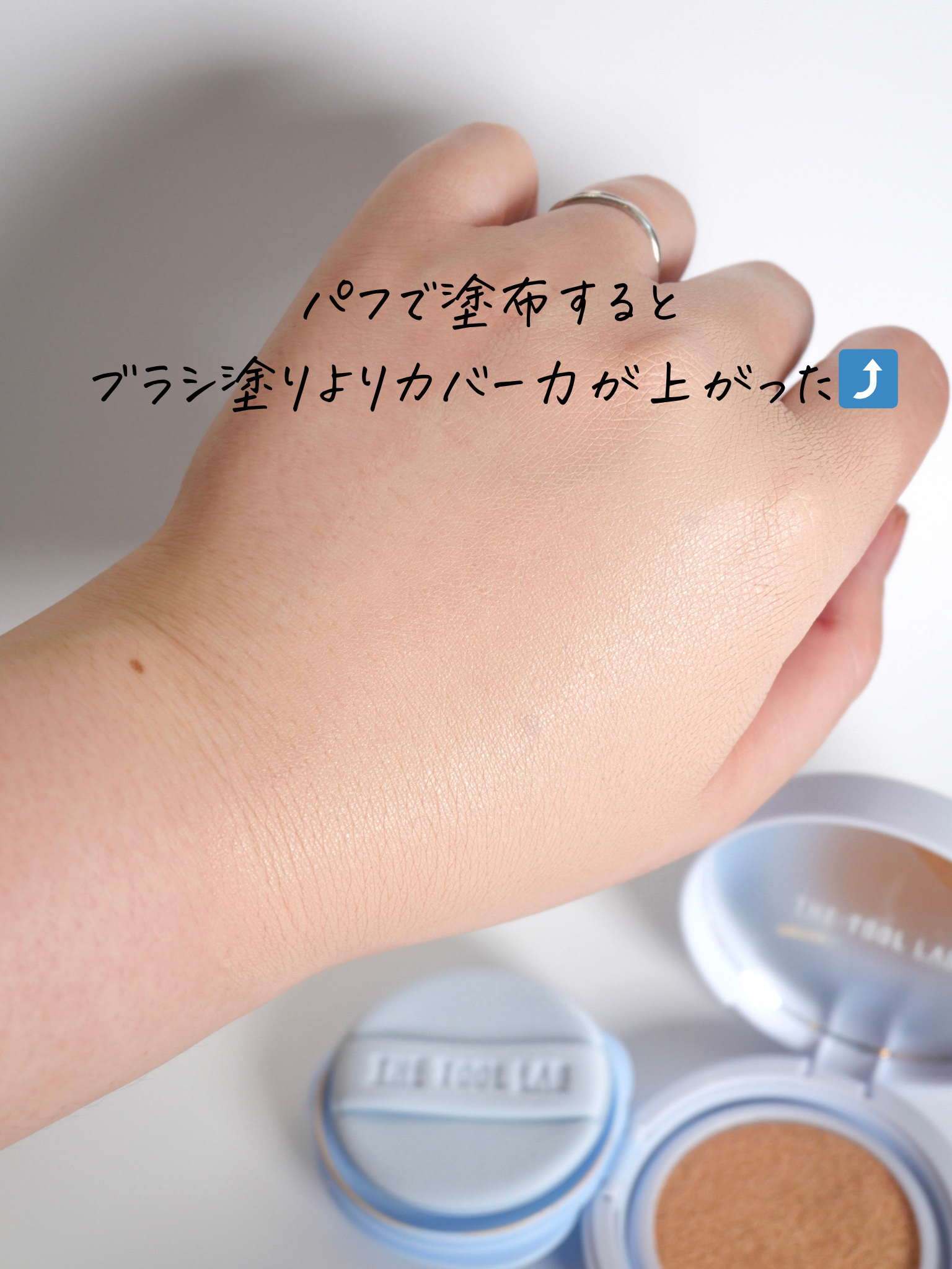 #PR🤍𐙚THETOOLLAB【スタンプスキンフィットクッションエアリー】メイクアップツールブランドから発売のクッションファンデーション🫧専用のブラシがセットで付いています🙌とにかくこのブラシの使いやすさに感動!手のひらサイズで小さめなので小...
