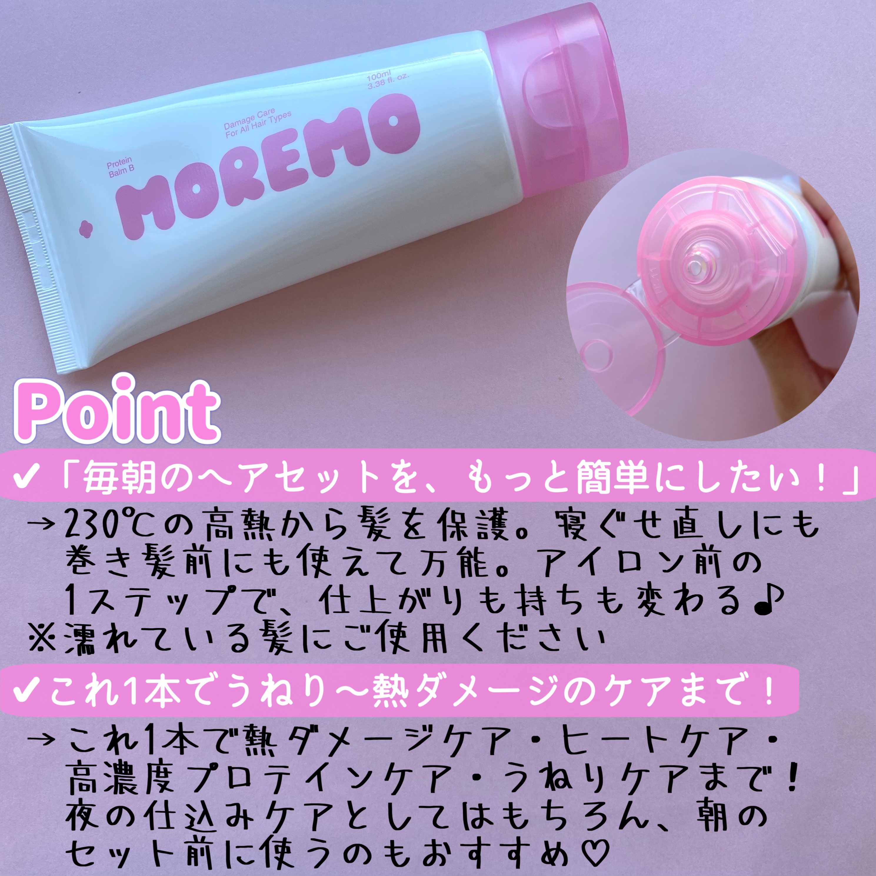 ***【モレモプロテインバームB】この夏、“湿気・広がり・パサつき”に悩む方必見!パワーアップしたMOREMOで、髪の芯から美しく✨毎日のドライヤーやヘアアイロン、紫外線による髪のパサつきが気になっていましたが…このプロテインバームを使うと、...