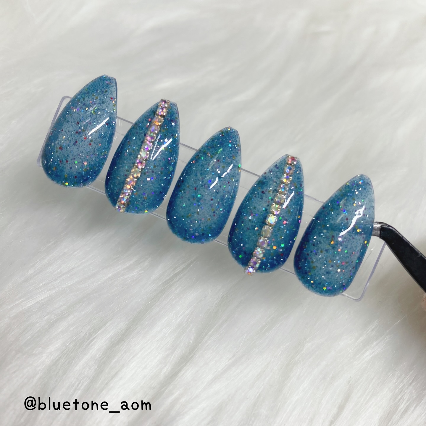 ラメがしっかりしてるし クリアカラーが入ってるから オーロラパウダー無しでも 充分キラキラしました! 反射強めのフィルムなので 実物はもっと うるうるとキラキラが強いです! ビー玉みたい🥺 ネイルシール長持ちさせたいけど ちょっと飽きてきたな〜って時とかに 全然違った印象になるのでオススメです! Seriaのベースジェル 本当にうるうるネイルしやすいので オススメしたい🙆♀️