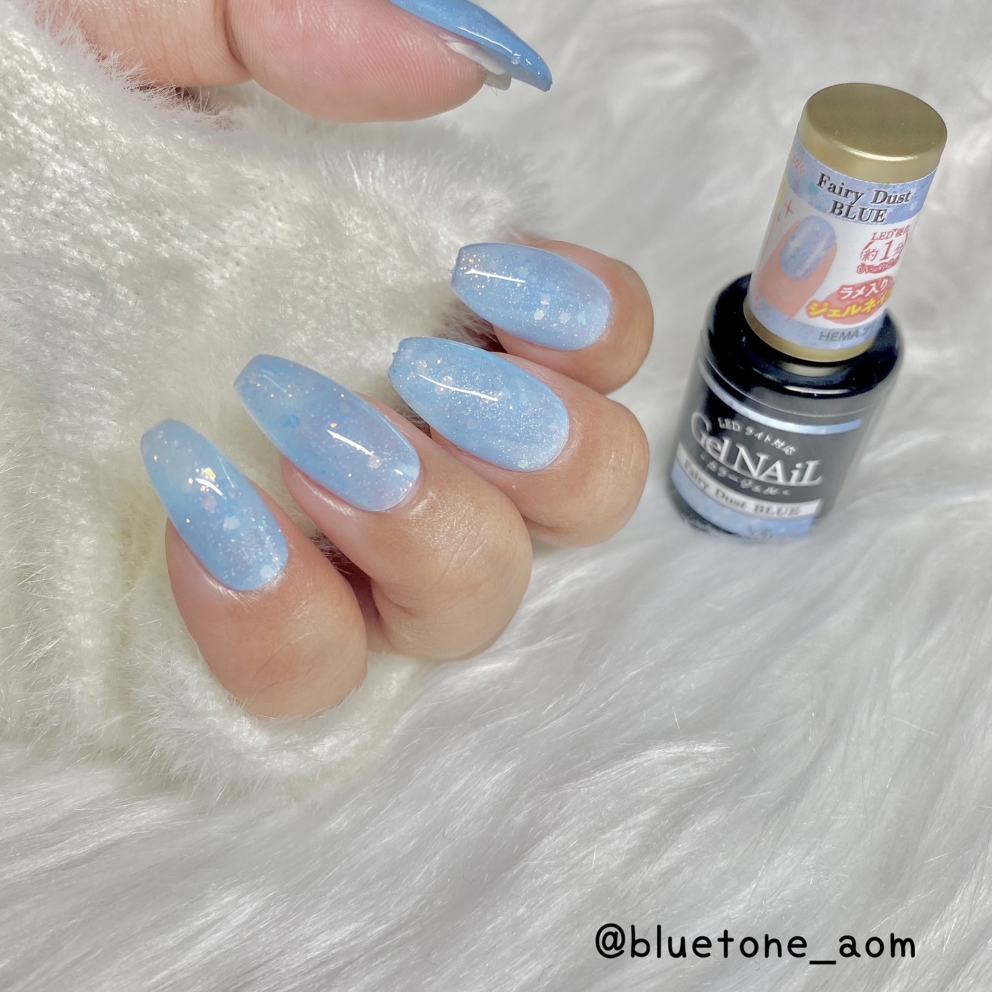 ラメがしっかりしてるし クリアカラーが入ってるから オーロラパウダー無しでも 充分キラキラしました! 反射強めのフィルムなので 実物はもっと うるうるとキラキラが強いです! ビー玉みたい🥺 ネイルシール長持ちさせたいけど ちょっと飽きてきたな〜って時とかに 全然違った印象になるのでオススメです! Seriaのベースジェル 本当にうるうるネイルしやすいので オススメしたい🙆♀️