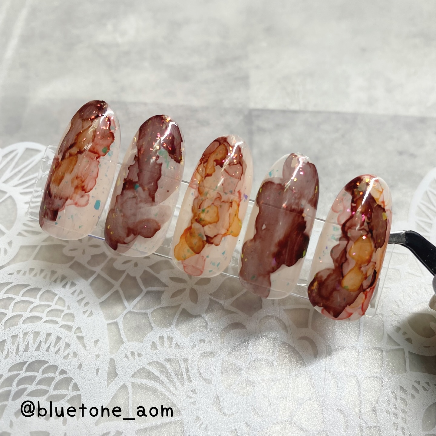 ラメがしっかりしてるし クリアカラーが入ってるから オーロラパウダー無しでも 充分キラキラしました! 反射強めのフィルムなので 実物はもっと うるうるとキラキラが強いです! ビー玉みたい🥺 ネイルシール長持ちさせたいけど ちょっと飽きてきたな〜って時とかに 全然違った印象になるのでオススメです! Seriaのベースジェル 本当にうるうるネイルしやすいので オススメしたい🙆♀️