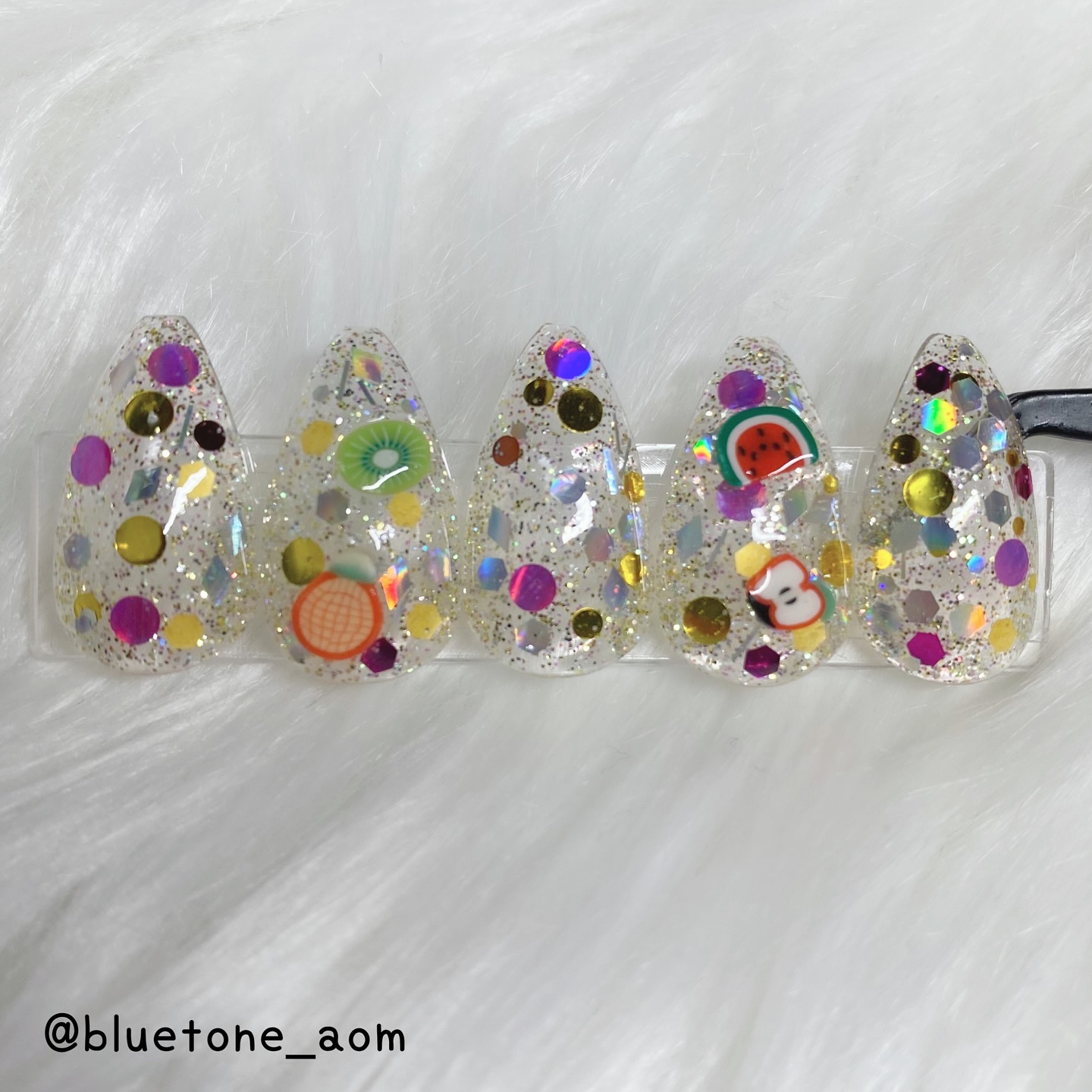 ラメがしっかりしてるし クリアカラーが入ってるから オーロラパウダー無しでも 充分キラキラしました! 反射強めのフィルムなので 実物はもっと うるうるとキラキラが強いです! ビー玉みたい🥺 ネイルシール長持ちさせたいけど ちょっと飽きてきたな〜って時とかに 全然違った印象になるのでオススメです! Seriaのベースジェル 本当にうるうるネイルしやすいので オススメしたい🙆♀️
