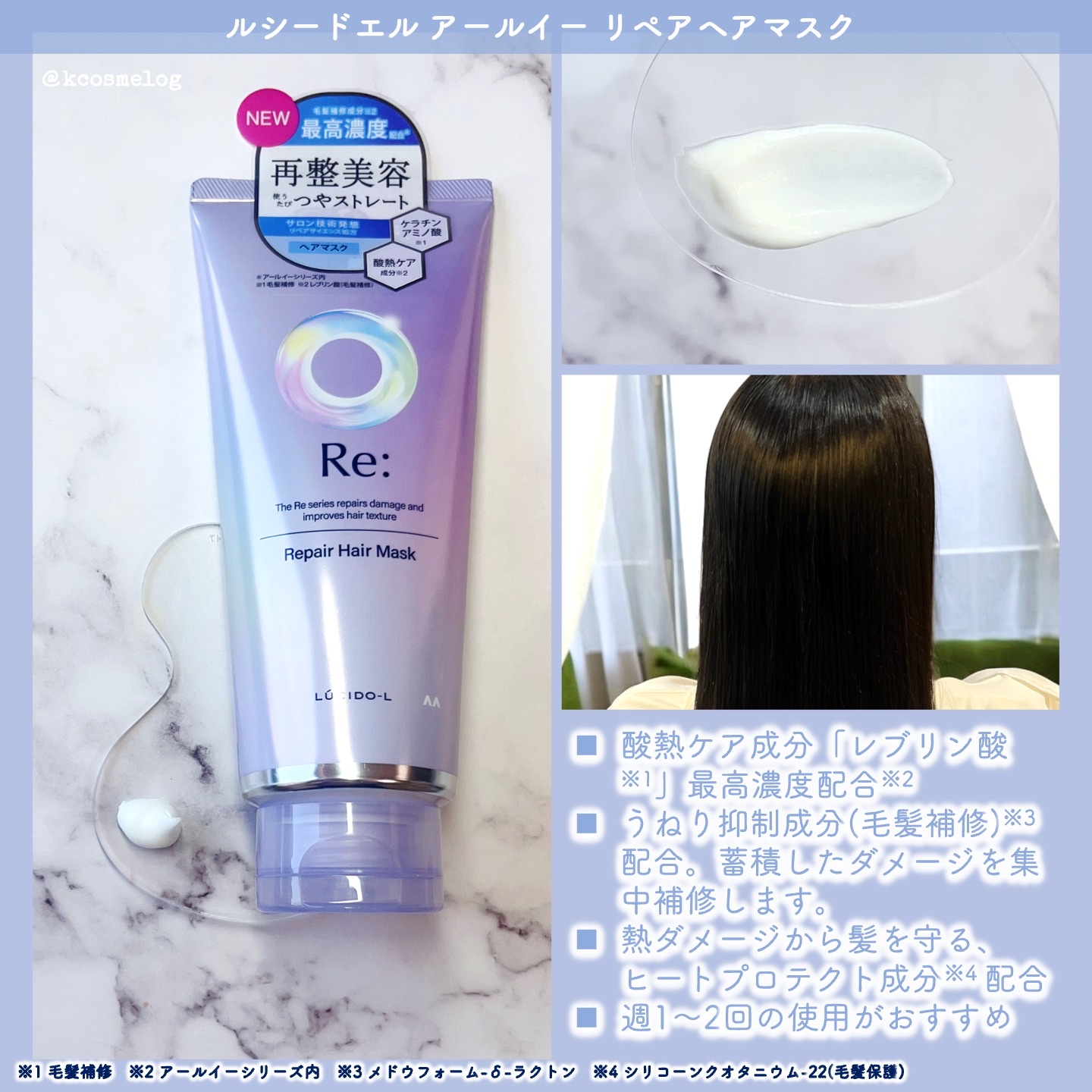 ルシードエルさまからいただきました。ルシードエルアールイーリペアヘアマスク2025年8月25日アールイーシリーズリニューアル新発売✂酸熱ケア▶︎髪に熱を与えることでヘアケア効果を促進させる。酸熱ケア成分▶︎レブリン酸(毛髪補修)を、アールイー...