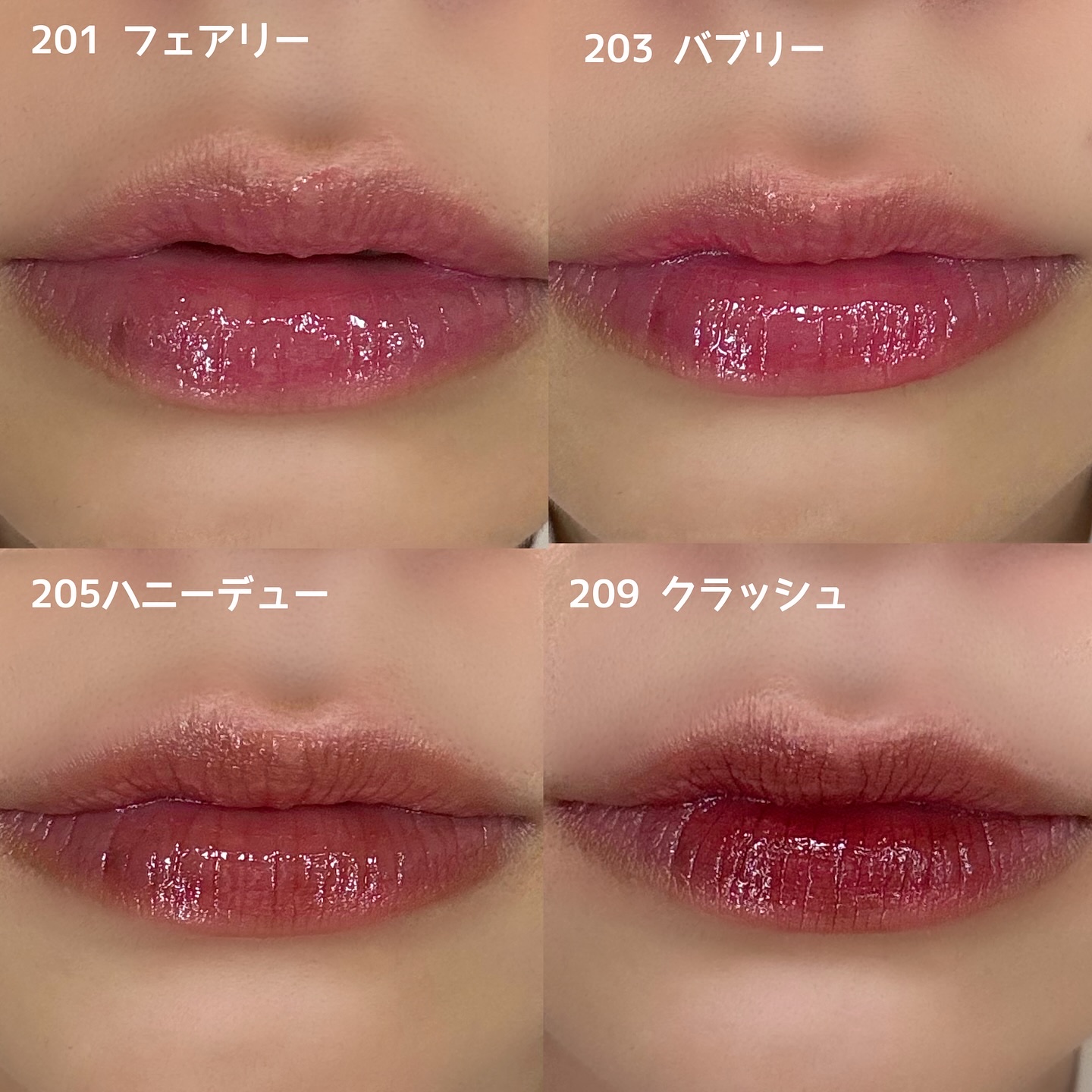 - <201 フェアリー> ダイマージリノール酸ジイソステアリル、ジフェニルシロキシフェニルトリメチコン、ビスジグリセリルポリアシルアジペート-2、水、ジフェニルジメチコン、水添ポリイソブテン、セチルPEG/PPG-10/1ジメチコン、ポリソルベート60、ペンチレングリコール、グリセリン、イソステアリン酸ポリグリセリル-4、フェノキシエタノール、1,2-ヘキサンジオール、セテアレス-20、酸化チタン (CI 77891)、(アクリル酸ヒドロキシエチル/アクリロイルジメチルタウリンNa)コポリマー、ステビオシド、スクワラン、香料、ジラウラミドグルタミドリシンNa、エチルヘキシルグリセリン、エチレンジアミンジコハク酸3Na、赤色227号 (CI 17200)、水酸化Al、黄色5号 (CI 15985)、ポリアクリル酸アンモニウム、イソステアリン酸ソルビタン、黄色4号 (CI 19140)、BG、赤色223号 (CI 45410)、青色1号 (CI 42090)、アラントイン、パンテノール、ツボクサエキス、ヒアルロン酸、加水分解ヒアルロン酸、ヒアルロン酸Na <203 バブリー> ダイマージリノール酸ジイソステアリル、ジフェニルシロキシフェニルトリメチコン、ビスジグリセリルポリアシルアジペート-2、水、ジフェニルジメチコン、水添ポリイソブテン、セチルPEG/PPG-10/1ジメチコン、ポリソルベート60、ペンチレングリコール、グリセリン、イソステアリン酸ポリグリセリル-4、フェノキシエタノール、1,2-ヘキサンジオール、セテアレス-20、(アクリル酸ヒドロキシエチル/アクリロイルジメチルタウリンNa)コポリマー、ステビオシド、酸化チタン (CI 77891)、スクワラン、香料、ジラウラミドグルタミドリシンNa、エチルヘキシルグリセリン、赤色227号 (CI 17200)、エチレンジアミンジコハク酸3Na、黄色5号 (CI 15985)、イソステアリン酸ソルビタン、水酸化Al、ポリアクリル酸アンモニウム、黄色4号 (CI 19140)、BG、青色1号 (CI 42090)、アラントイン、パンテノール、ツボクサエキス、ヒアルロン酸、加水分解ヒアルロン酸、ヒアルロン酸Na <204 レア> ダイマージリノール酸ジイソステアリル、ジフェニルシロキシフェニルトリメチコン、ビスジグリセリルポリアシルアジペート-2、水、ジフェニルジメチコン、水添ポリイソブテン、セチルPEG/PPG-10/1ジメチコン、ポリソルベート60、ペンチレングリコール、グリセリン、イソステアリン酸ポリグリセリル-4、フェノキシエタノール、1,2-ヘキサンジオール、セテアレス-20、(アクリル酸ヒドロキシエチル/アクリロイルジメチルタウリンNa)コポリマー、酸化チタン (CI 77891)、ステビオシド、スクワラン、香料、ジラウラミドグルタミドリシンNa、エチルヘキシルグリセリン、赤色227号 (CI 17200)、黄色5号 (CI 15985)、エチレンジアミンジコハク酸3Na、イソステアリン酸ソルビタン、水酸化Al、ポリアクリル酸アンモニウム、黄色4号 (CI 19140)、青色1号 (CI 42090)、BG、アラントイン、パンテノール、ツボクサエキス、ヒアルロン酸、加水分解ヒアルロン酸、ヒアルロン酸Na <205 ハニーデュー> ダイマージリノール酸ジイソステアリル、ジフェニルシロキシフェニルトリメチコン、ビスジグリセリルポリアシルアジペート-2、水、ジフェニルジメチコン、水添ポリイソブテン、セチルPEG/PPG-10/1ジメチコン、ポリソルベート60、ペンチレングリコール、グリセリン、イソステアリン酸ポリグリセリル-4、フェノキシエタノール、1,2-ヘキサンジオール、セテアレス-20、(アクリル酸ヒドロキシエチル/アクリロイルジメチルタウリンNa)コポリマー、酸化チタン (CI 77891)、ステビオシド、スクワラン、香料、ジラウラミドグルタミドリシンNa、エチルヘキシルグリセリン、赤色227号 (CI 17200)、黄色5号 (CI 15985)、エチレンジアミンジコハク酸3Na、イソステアリン酸ソルビタン、水酸化Al、ポリアクリル酸アンモニウム、黄色4号 (CI 19140)、青色1号 (CI 42090)、BG、アラントイン、パンテノール、ツボクサエキス、ヒアルロン酸、加水分解ヒアルロン酸、ヒアルロン酸Na <206 トフィー> ダイマージリノール酸ジイソステアリル、ジフェニルシロキシフェニルトリメチコン、ビスジグリセリルポリアシルアジペート-2、水、ジフェニルジメチコン、水添ポリイソブテン、セチルPEG/PPG-10/1ジメチコン、ポリソルベート60、ペンチレングリコール、グリセリン、イソステアリン酸ポリグリセリル-4、フェノキシエタノール、1,2-ヘキサンジオール、セテアレス-20、(アクリル酸ヒドロキシエチル/アクリロイルジメチルタウリンNa)コポリマー、ステビオシド、スクワラン、香料、ジラウラミドグルタミドリシンNa、酸化チタン (CI 77891)、エチルヘキシルグリセリン、黄色5号 (CI 15985)、エチレンジアミンジコハク酸3Na、黄色4号 (CI 19140)、赤色227号 (CI 17200)、イソステアリン酸ソルビタン、赤色223号 (CI 45410)、青色1号 (CI 42090)、水酸化Al、ポリアクリル酸アンモニウム、BG、アラントイン、パンテノール、ツボクサエキス、ヒアルロン酸、加水分解ヒアルロン酸、ヒアルロン酸Na <207 フレイム> ダイマージリノール酸ジイソステアリル、ジフェニルシロ