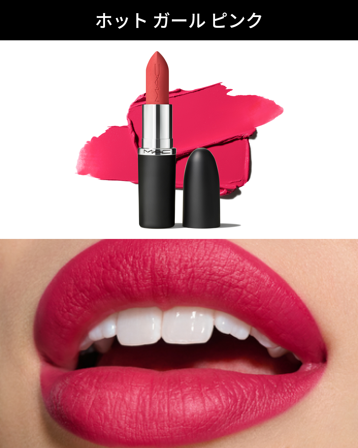 - <価格改定>2025年7月1日より¥4,620(税込)から¥4,400(税込)に改定いたします。 マットリップはここまで進化。 色もち12時間*続くのに乾燥レスな新感覚 ”オイルinマット” M・A・Cのマキシマル誕生。 毎日つけたくなるような、 バームのようななめらかな質感とつけ心地が12時間持続*。 ありのままの自分から、 さらに一歩先へ踏み出せるような自信を唇に *化粧持ち(色持ち)データ取得済み。(当社調べ。効果には個人差があります。) ①リッチな発色とカラーラインナップ M・A・C独自のテクノロジー、リッチピグメントフォーミュラにより鮮やかな発色を実現。 人気色を継続しながらも、新たにアーティストが厳選した25シェードは、 一人一人の個性やスタイル、魅力を高め、存在感を放つit カラーをラインナップ。 ②ストレスフリーなつけ心地 マットテクスチャー=乾燥しやすいというネガティブイメージを払拭する、オイル in マット フォーミュラ。 自然由来のオーガニックのシアバター、ココアバター、ココナッツオイル配合**で濃密な潤いを与え、驚きのなめらかな付け心地とフィット感を叶えた。 香りは、シグネチャーであるバニラを継続。 **シアバター:シア脂(保湿成分) 、ココアバター:カカオ脂(保湿成分) 、ココナッツオイル:ヤシ油(保湿成分) ③12時間持続*というラスティング力 ピタリと唇に密着しながらもしなやかに寄り添い、鮮やかな発色、つけ心地が12時間*持続。 唇をティントのように染めずに、それでいてどんな瞬間も自信の持てる唇に。 *化粧もちデータ取得済み (当社調べ、効果には個人差があります) ④魅力的な新パッケージ 再生プラスチックを約30%採用した、環境にやさしい新パッケージへとパワーアップ。 程よく重厚感のある感触はラグジュアリーな気持ちを高めてくれる。 また、リップにはM・A・Cのエンボス加工も。