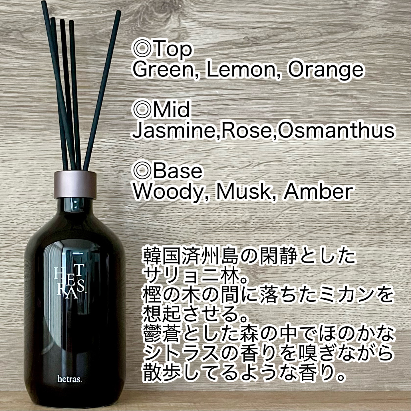 ヘトラス 大容量ディフューザーをお試しさせていただきました。何本も使っている大好きなディフューザー。シンプルでおしゃれなデザインと、高級感のある素敵な香りがお気に入りです。主人も気に入って使っています。今回お試しさせていただいたのは済州サリョ...