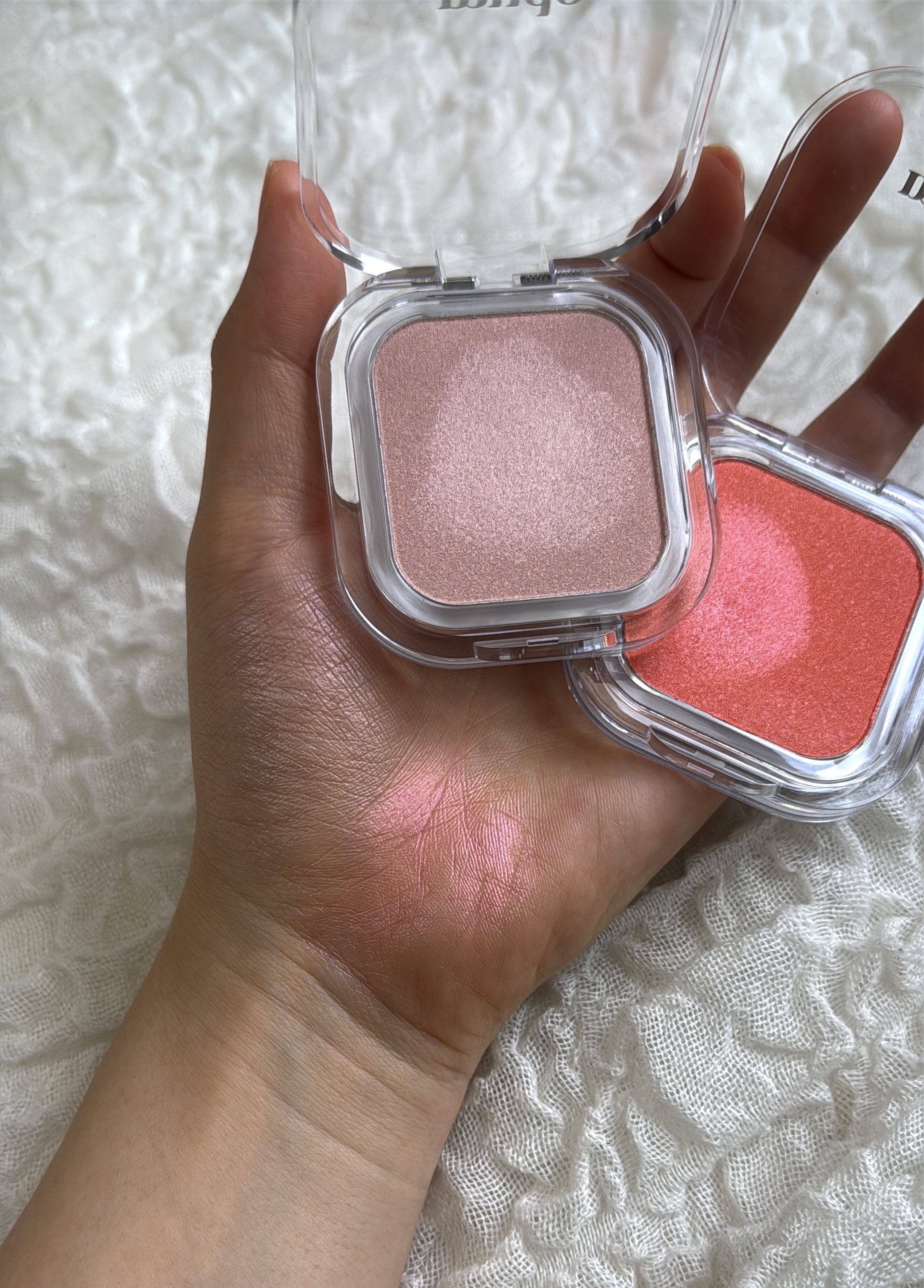 個人的には指でつけていく方が発色が綺麗に感じて好きです♡ ふんわり色付き、肌に密着して固定される感じがあり個人的にはプリンポットよりも使いやすく気に入ってます🫶♡ でも、やっぱりササッと簡単に使えるのはパウダーかな…🤫🫧